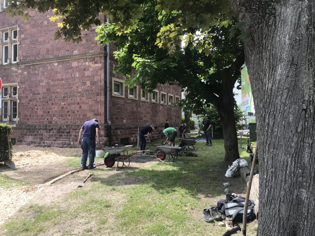 Vom 23. -26. Mai 2019 fand eine bundesweite 72-Stunden-Aktion statt, die den BDKJ Diözesanverbänden organisiert wurde. Eine von 3.400 teilnehmenden Gruppen war bei uns an der Erich Kästner-Schule. Gemeinsam mit Mitgliedern der Pfadfindergruppe von Frau Bernstein nahmen 14 Schüler*innen der 7.Klassen daran teil. Ihr Projekt war die Sanierung unseres in die Jahre gekommenen Barfußpfades und der Fühlkästen. Neue Akzente wurden durch Brutkästen für Vögel und Fledermäuse sowie einer „Sonnenbank“ für Eidechsen gesetzt.