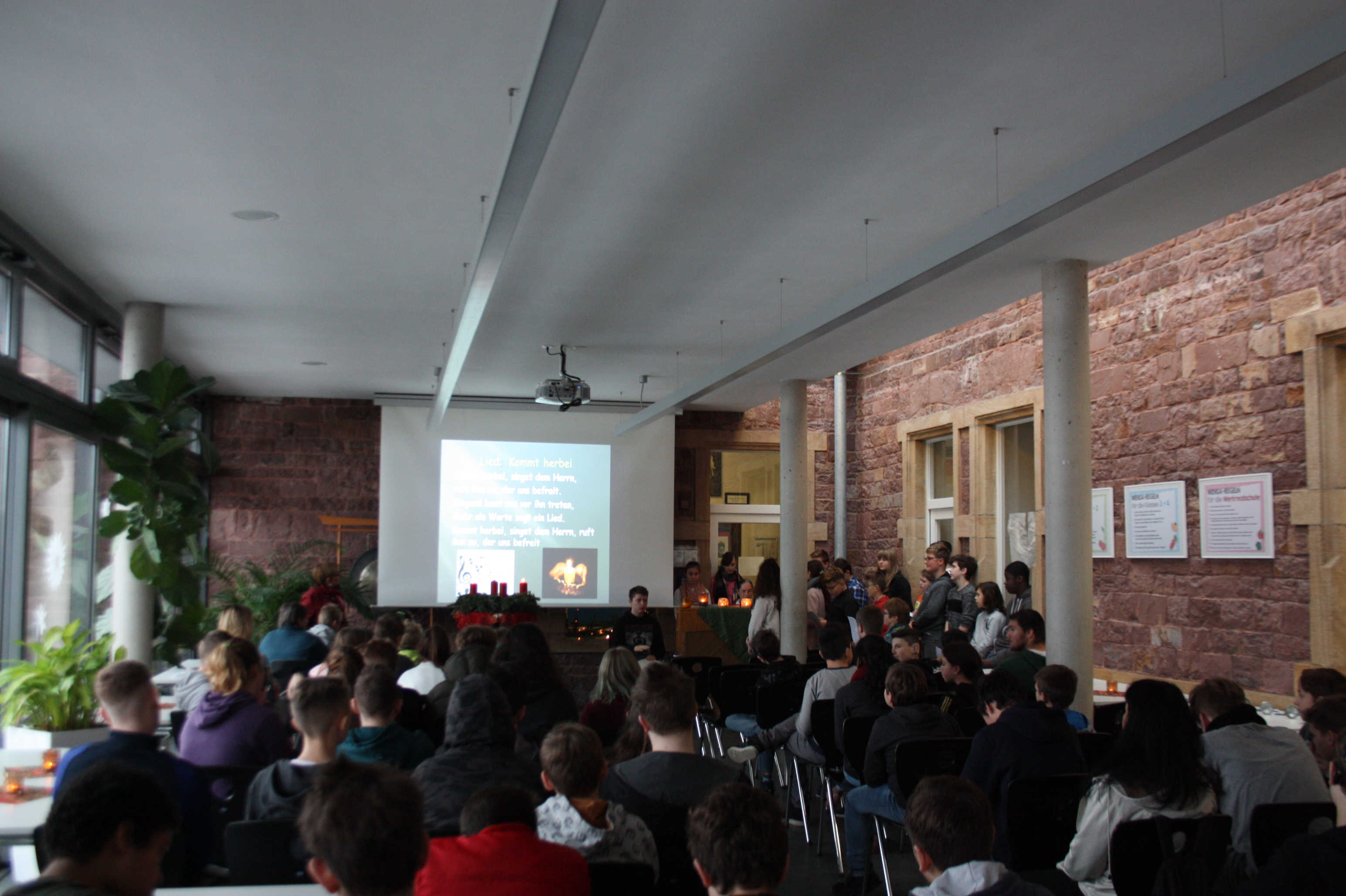 Jeden Montag gab es in der Adventszeit ein gemeinsames Singen aller Grundschüler in der Mensa. Am 18. Dezember 2017 wurden auch die Werkrealschüler zu einer Adventsfeier eingeladen. Frau Möller, eine unserer Schulbegleiterinnen brachte dafür in ihrer Funktion als Pfadfinderin das heilige Licht aus Bethlehem, das feierlich zum Anzünden einer Kerze an der EKS verwendet wurde. Umrahmt von vielen gemeinsam gesungenen Liedern und Gedichten, vorgetragen von den Klassen 7a und 8a war dies eine gelungene Veranstaltung zur Einstimmung auf die folgende Zeit.