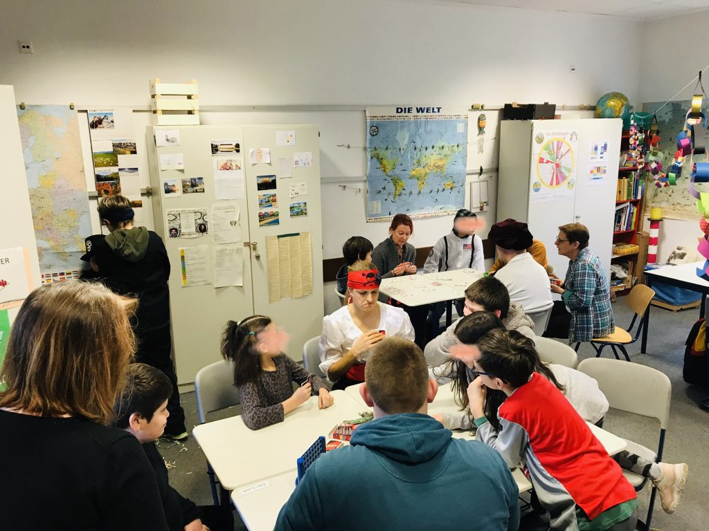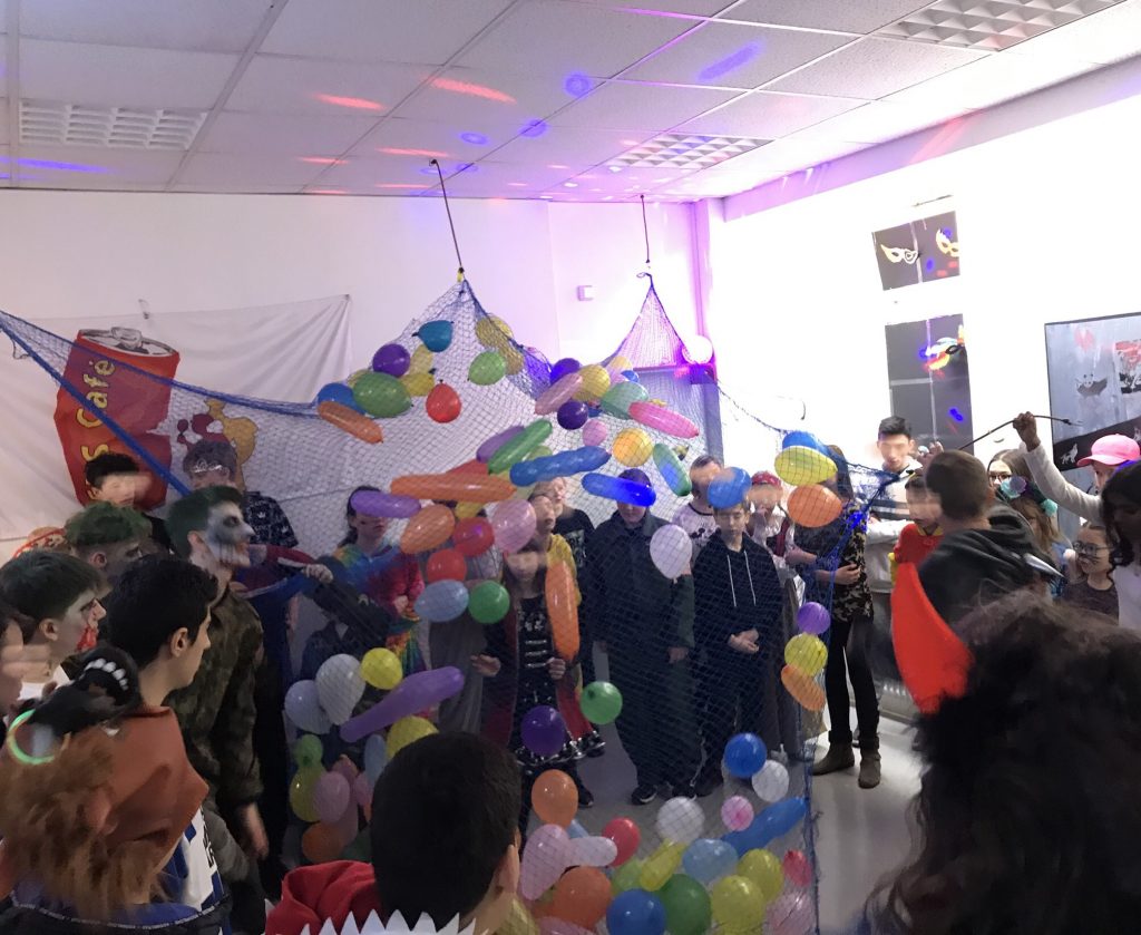 Am Freitag vor den Faschingsferien fand an der EKS traditionell eine mitreißende Faschingsparty statt. Dafür hatten sich nahezu alle Schüler*innen und Lehrer*innen in bunte, wilde und lustige Gestalten verwandelt. Die Grundschule feierte mit Spielen und leckerem Frühstück in ihren Zimmern und kam später mit einer Polonaise durch den Gang der Hauptschul-Party. Dort gab es wieder ein „Chill-Zimmer“, in dem sich die Schüler*innen eine (Hör-)Pause gönnen konnten. Nebenan war das Spiele- und Schminkzimmer, das ebenfalls sehr gut angenommen wurde. Die Schülerfirma hatte den Chemiesaal in eine buntgeschmückte Kantine verwandelt, in dem sie Hotdogs, Getränke und Knabbereien zum Kauf anboten. Im EKS-Café steppte im wahrsten Sinne der Bär, denn dort konnten alle ausgelassen in der Disco tanzen und an lustigen Spielen, wie der „Reise nach Jerusalem“ teilnehmen. Ebenfalls traditionell fanden in Flur „Schokokussrennen“ und „Eierlaufen“ statt. Alle waren sich einig: Das war wieder eine gelungene Faschingsparty an der EKS!