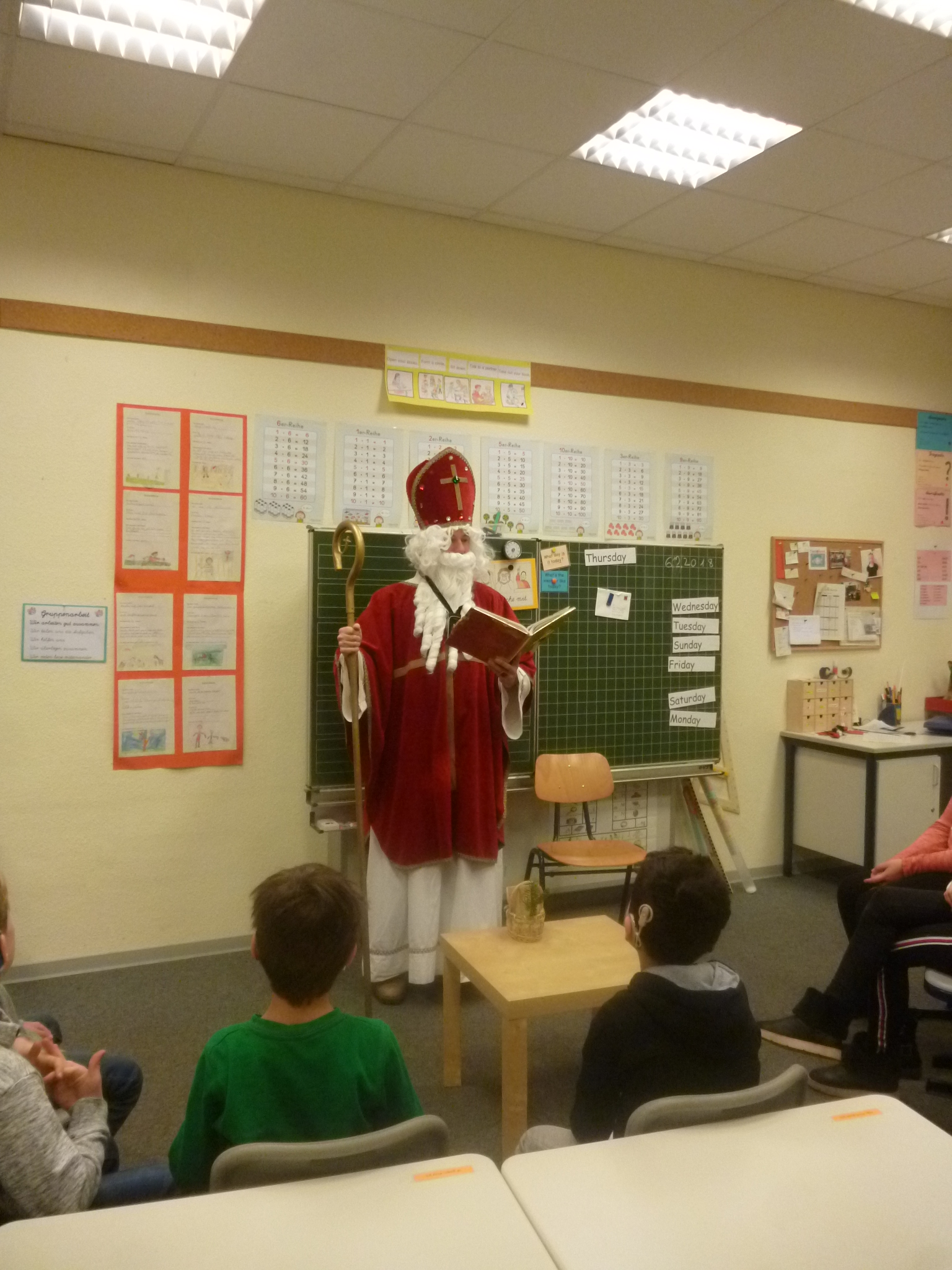 Heute staunten die Schülerinnen und Schüler der Erich Kästner-Schule nicht schlecht! Gleich am Morgen wanderte der Nikolaus durch unsere Gänge und besuchte jede Klasse. Nachdem er ihnen aus seinem Büchlein vorgelesen und das bisherige Schuljahr Revue passieren lassen hat, gab es noch ein mit Leckereien gefülltes Säckchen.