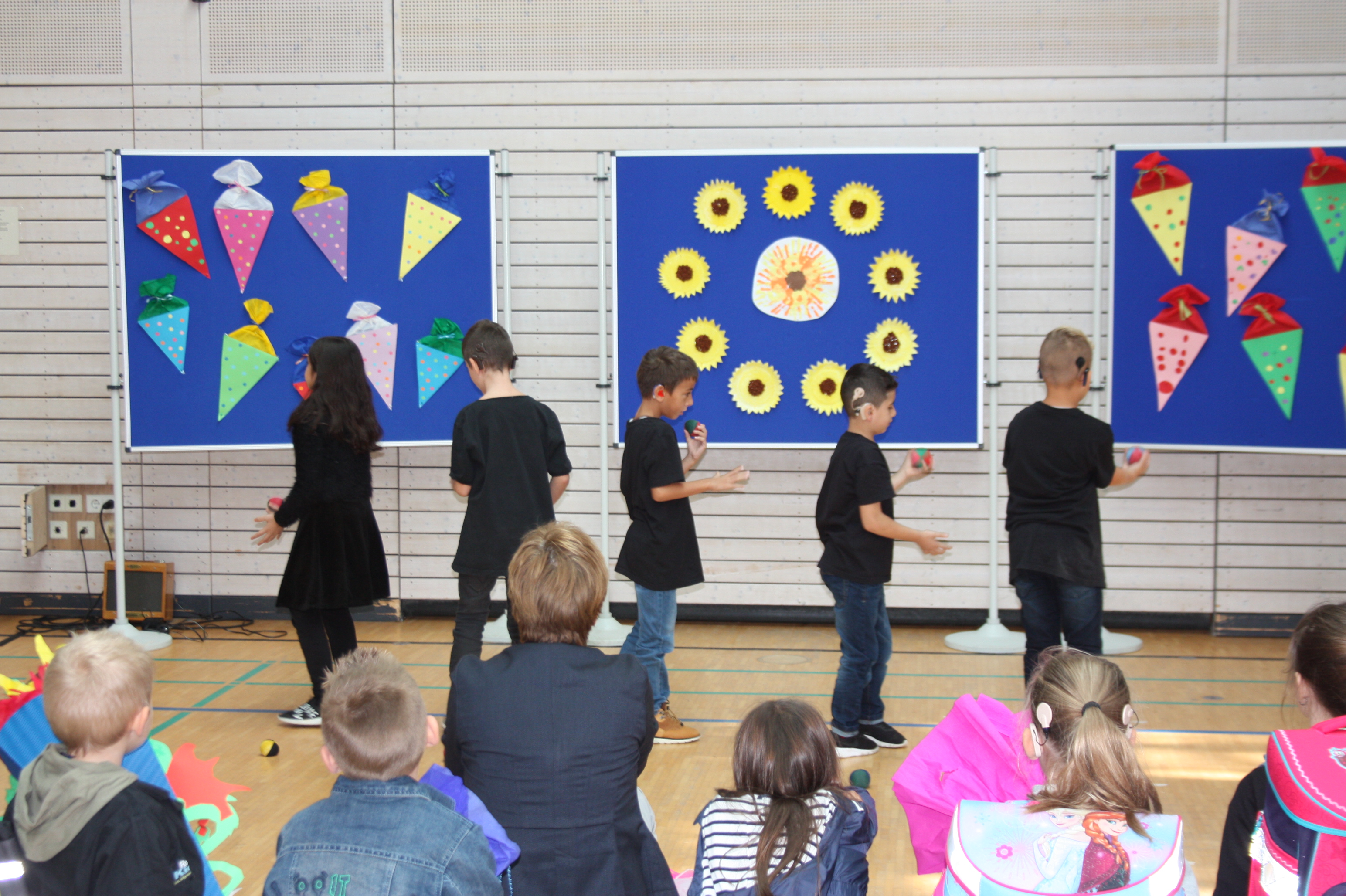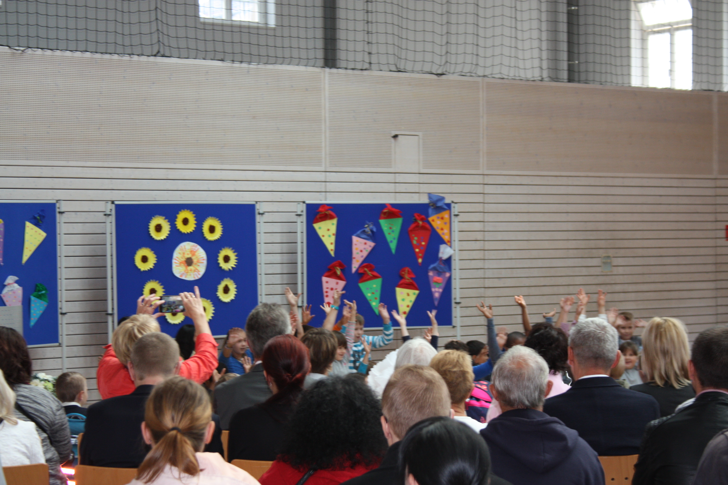 Am Freitag, den 15. September 2017 begrüßten wir in der EKS-Halle die neuen Erstklässler an unserer Schule. Musikalisch wurden sie und ihre Eltern vom Grundschulchor mit dem „Erich-Kästner-Rock“ in Empfang genommen. Anschließend richtete Frau Kretschmer, unsere Konrektorin, ein paar herzliche Worte an die Kinder und leitete zum nächsten Programmpunkt über, den die SchülerInnen der Klassen 2a und 3a mit dem Gebärdenlied „So groß wie ein Baum“ bildeten. Bevor die SoL Zirkus einen Ausschnitt aus ihrem Repertoire „Bunte Zirkuswelt“ präsentierte, begrüßte Herr Langel, unser Schulleiter, die Ankömmlinge. Endlich wurden die Jungen und Mädchen in ihre Klassen aufgeteilt und lernten ihre Klassenkameraden und -lehrerinnen kennen. Gemeinsam gingen sie in ihre künftigen Klassenzimmer, während Frau Wolters, unsere Elternvertreterin, noch ein paar Grußworte an die Eltern richtete.