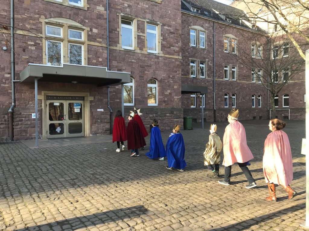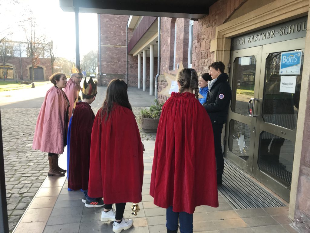 Die Schüler*innen der 5g sangen Ihnen ein Sternsingerlied und sagten einen Vers über das Sternsingen und Weihnachten auf. Danach brachten sie den Segen am Türrahmen an und verabschiedeten sich mit einem Segenslied. Im Anschluss segneten sie noch einzelne Klassenzimmer, denn viele Klassen hatten sie dazu eingeladen.