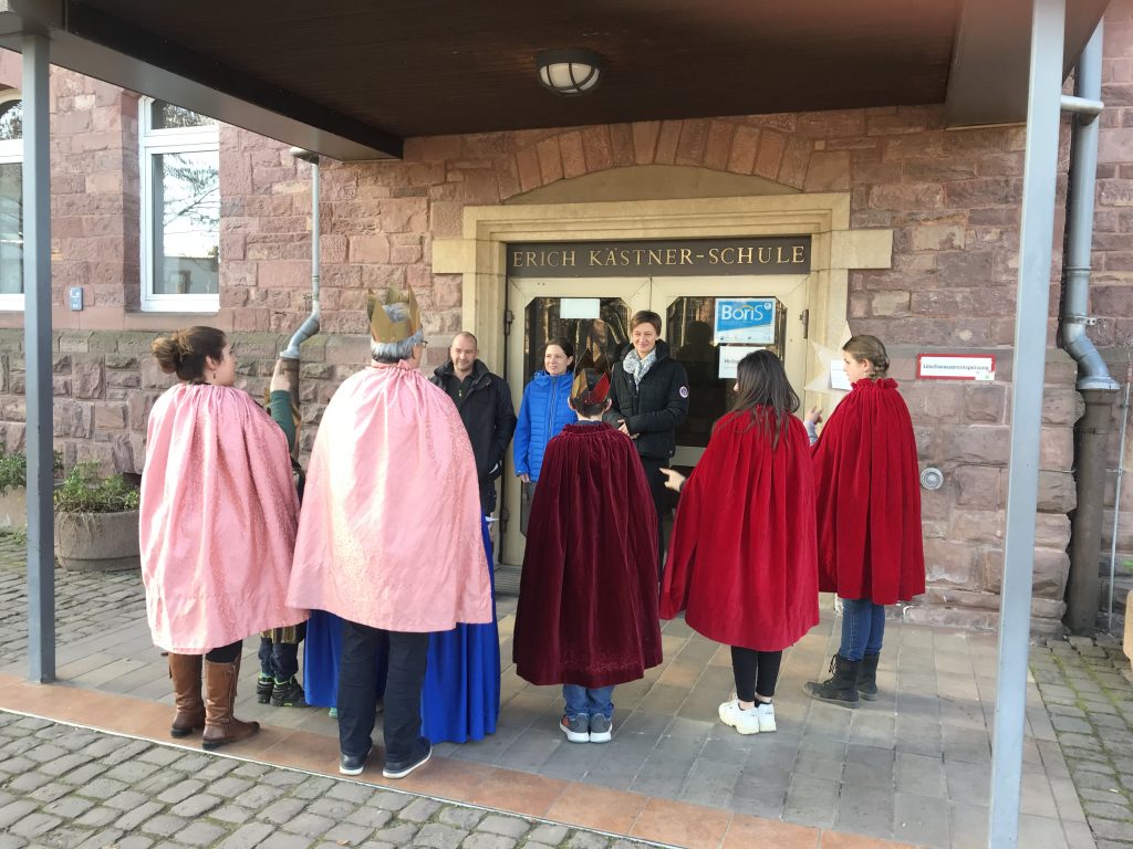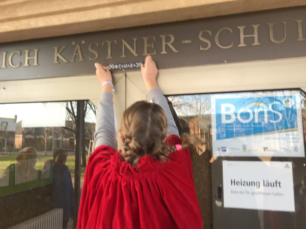 Gemeinsam mit Frau Bechberger, die die Sternsinger-Aktion initiiert hatte, segnete die Klasse 5g am Donnerstag, den 16.01.2020 das Schulhaus mit dem Sternsingersegen 20+C+M+B+20. Dieser bedeutet „Christus Mansionem Benedicat“. Das ist lateinisch und bedeutet, dass Jesus dieses Haus im Jahr 2020 beschützen soll – und alle, die hier ein- und ausgehen.
