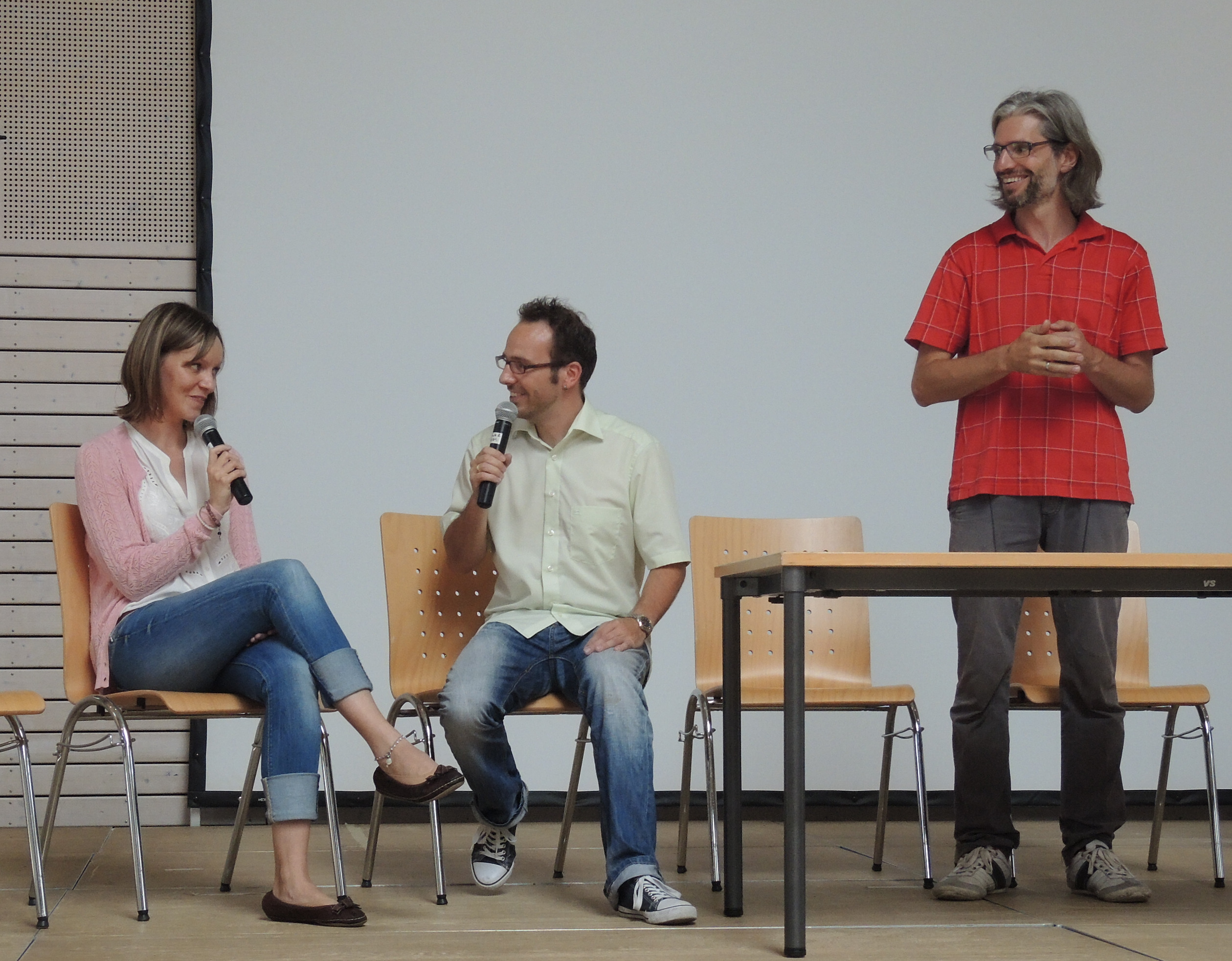 In der Plenumsveranstaltung stellte der Moderator Christoph Schwalbe die Ehemaligen zunächst kurz vor und erfragte in einem Interview ihren Beruf und ihre Ausbildung.