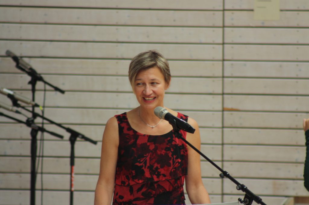 Eröffnet wurde das Fest in der EKS-Halle von unserem Chor, der unter der Leitung von Frau Heinold und Frau Koppe drei Lieder einstudiert hatte. Danach war es an unserer Rektorin, Frau Kretschmer, die Gäste zu begrüßen und bekanntzugeben, dass Frau Hielscher-Füeß nun unsere erste Konrektorin ist. Mit begeistertem Applaus wurde diese von allen Anwesenden in ihrem Amt begrüßt. Natürlich ließ es sich Frau Hielscher-Füeß nicht nehmen, selbst ein paar Worte zu sprechen und sich bei allen zu bedanken, die sie auf ihrem Weg begleitet haben.