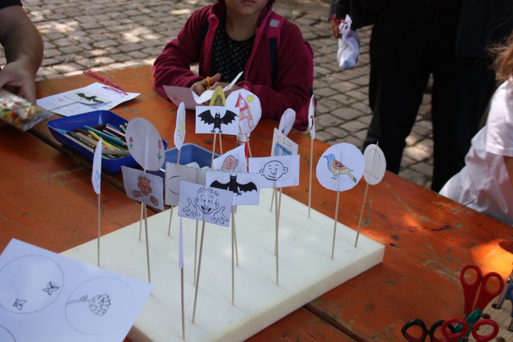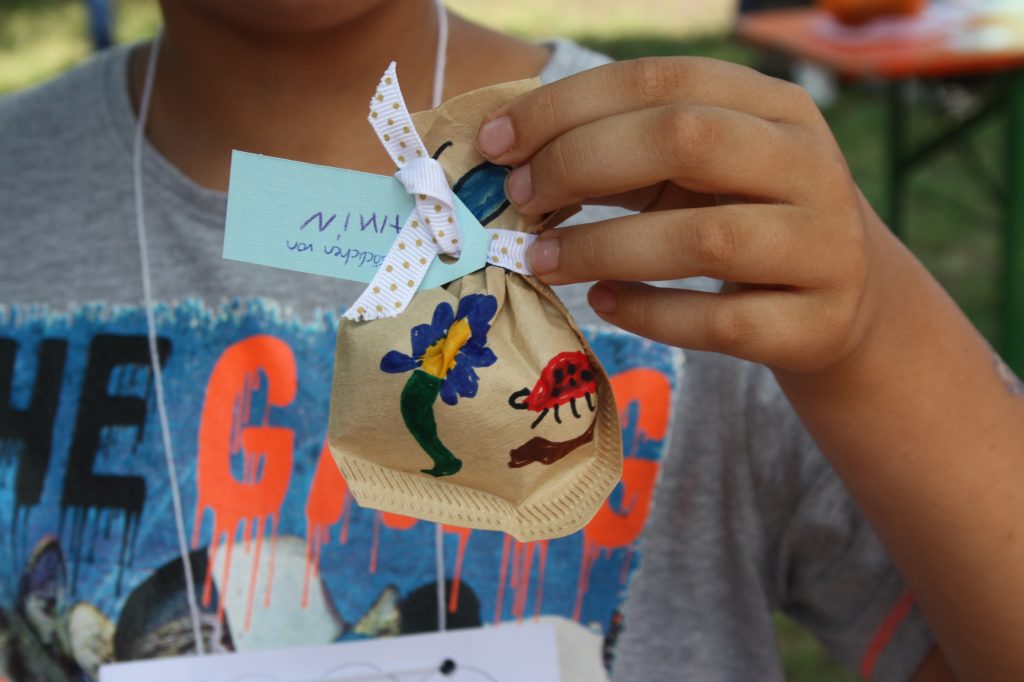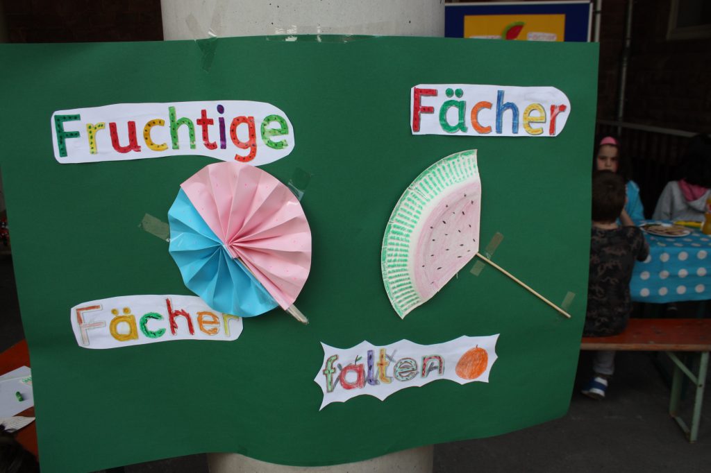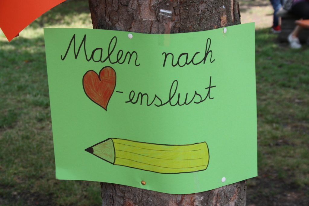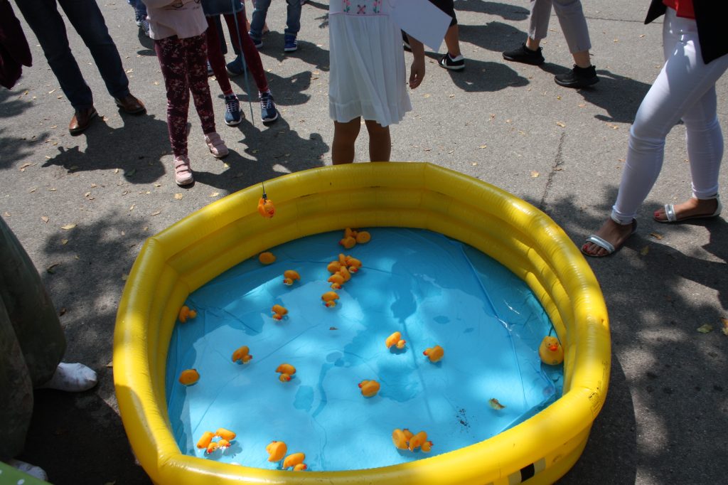 Ebenfalls Tradition hat bei unserem Sommerfest mittlerweile das schöne Wetter und so drängten nach dem Eröffnungsprogramm die Kinder bei strahlendem Sonnenschein nach draußen, um an den zahlreichen Ständen, welche von den Klassen aufgebaut waren, zu spielen, zu basteln und zu malen.