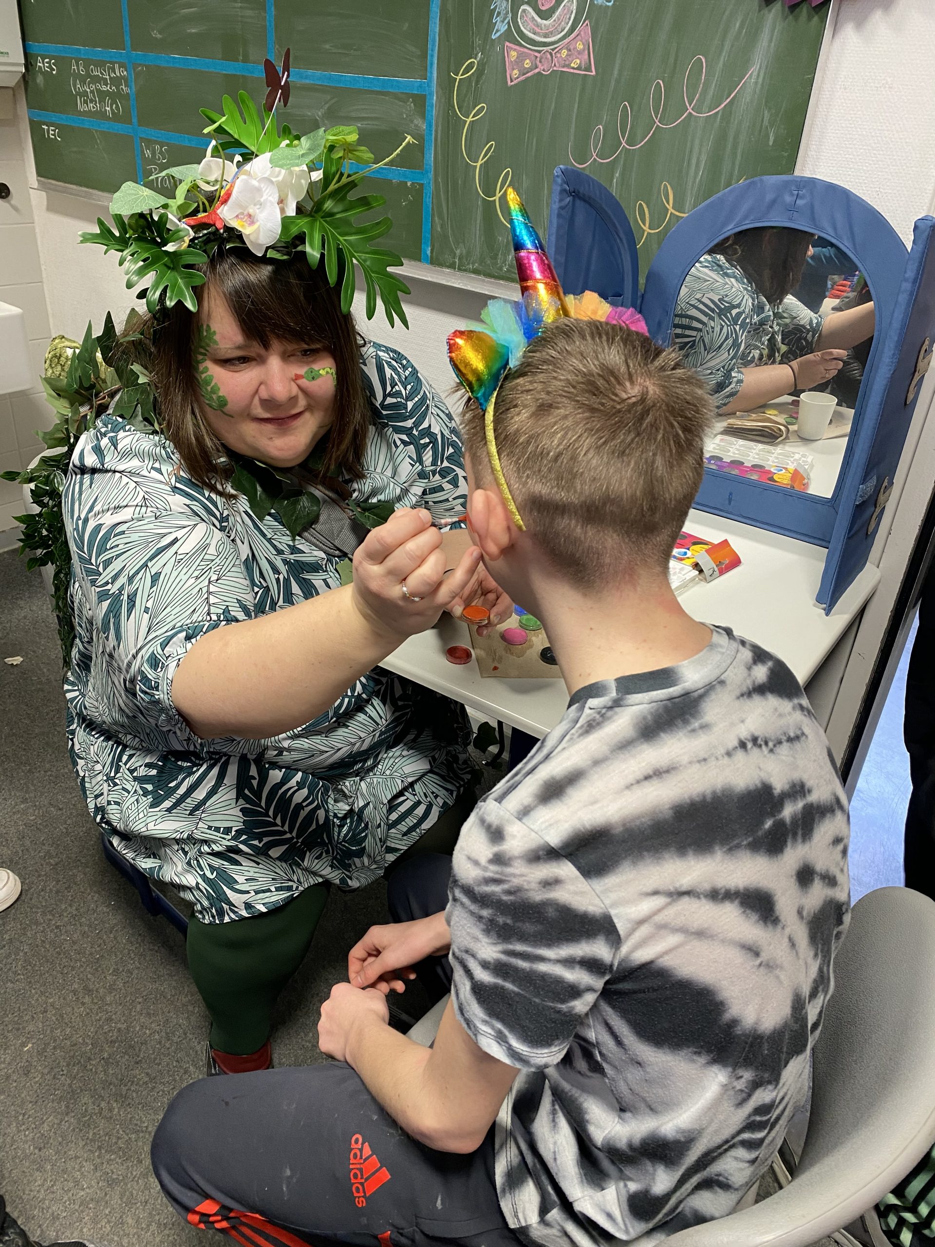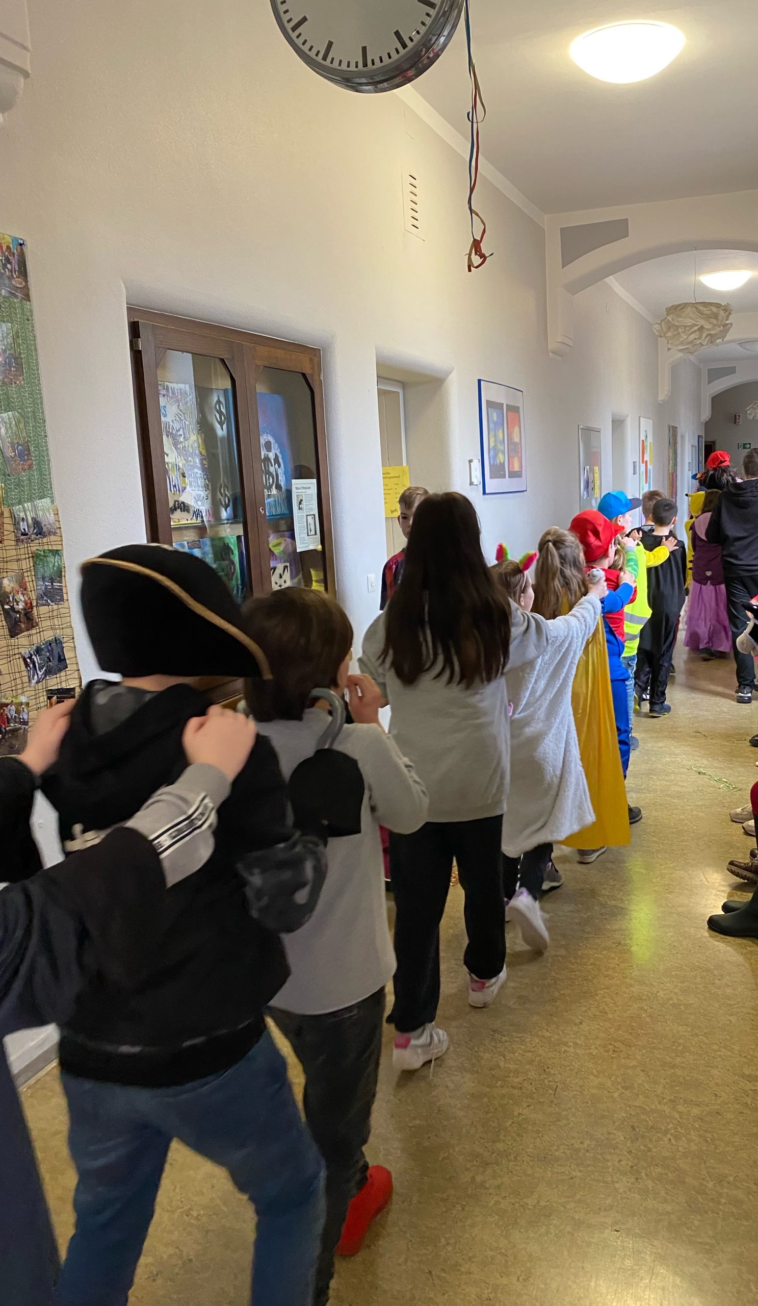 Am Freitag, den 17.Februar 2023 durften wir endlich wieder unsere legendäre Faschingsparty steigen lassen! Während die Grundschüler*innen gemeinsam feierten, war im ersten Stock für die Schüler*innen ab Klasse 5 ordentlich was geboten. In einem Klassenzimmer hatte die Schülerfirma ihren Verkauf aufgebaut und bot neben Hotdogs viele weitere Leckereien zum Verkauf an. Daneben gab es ein Spiele-und Schminkzimmer sowie einen Ruheraum, in dem die Schüler*innen einfach nur mal ausruhen und eine Hörpause machen konnten. Nicht fehlen durfte natürlich die Disco, in der die DJanes Julia und Ceylan ordentlich einheizten. Herr Settelmeyer und Herr Hingst animierten zu allerlei lustigen Spielen und sorgten damit für gute Stimmung.
