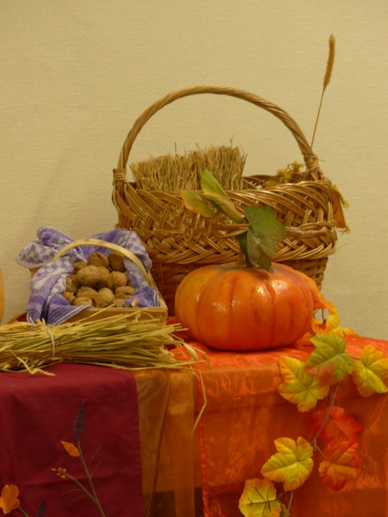 Am Morgen des 24. Oktobers 2019 trafen sich alle Grundschulklassen in der herbstlich geschmückten Sporthalle zur Erntedankfeier.