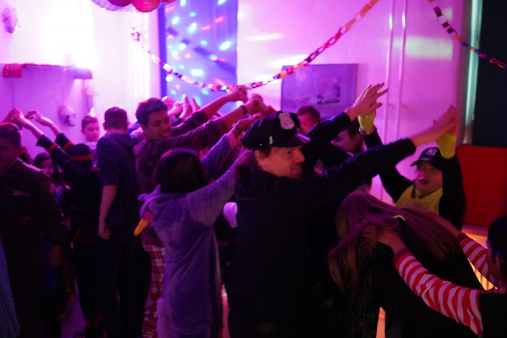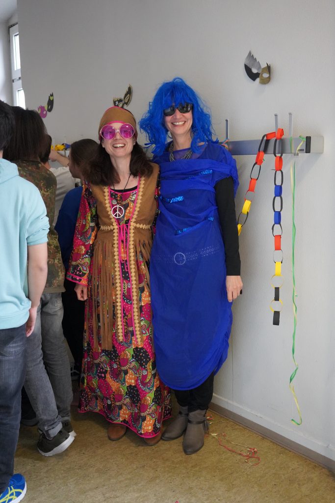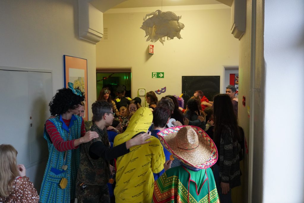 Auch in diesem Jahr starteten wir wieder mit einer närrischen Party in die Faschingsferien. Die Grundschule feierte klassen- bzw. stufenweise und zog mit einer Polonaise durch das Schulgebäude. Die Kinder waren bunt verkleidet und manchmal kaum noch zu erkennen. Die Schüler*innen ab Klasse 5 feierten ihre traditionelle Faschingsparty. Hierfür hatte die SMV das EKS- Café mit Luftballons abgehängt und in eine Discothek umgewandelt. Außerdem gab es einen Essensraum, in dem die Schülerfirma Hotdogs und andere Leckereien verkaufte. Wer es nicht so laut wollte, konnte sich im Spielezimmer vergnügen oder im „Chillraum“ ausruhen.