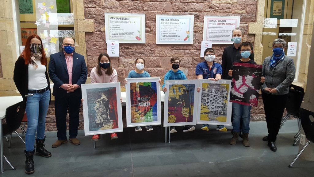 Prämiert wurden fünf Arbeiten unserer Schule, wobei Amin aus der Klasse 6b als Sieger hervorging. Geleitet wurde das Kunstprojekt von Frau Koppe, der Klassenlehrerin der Klasse 6b.