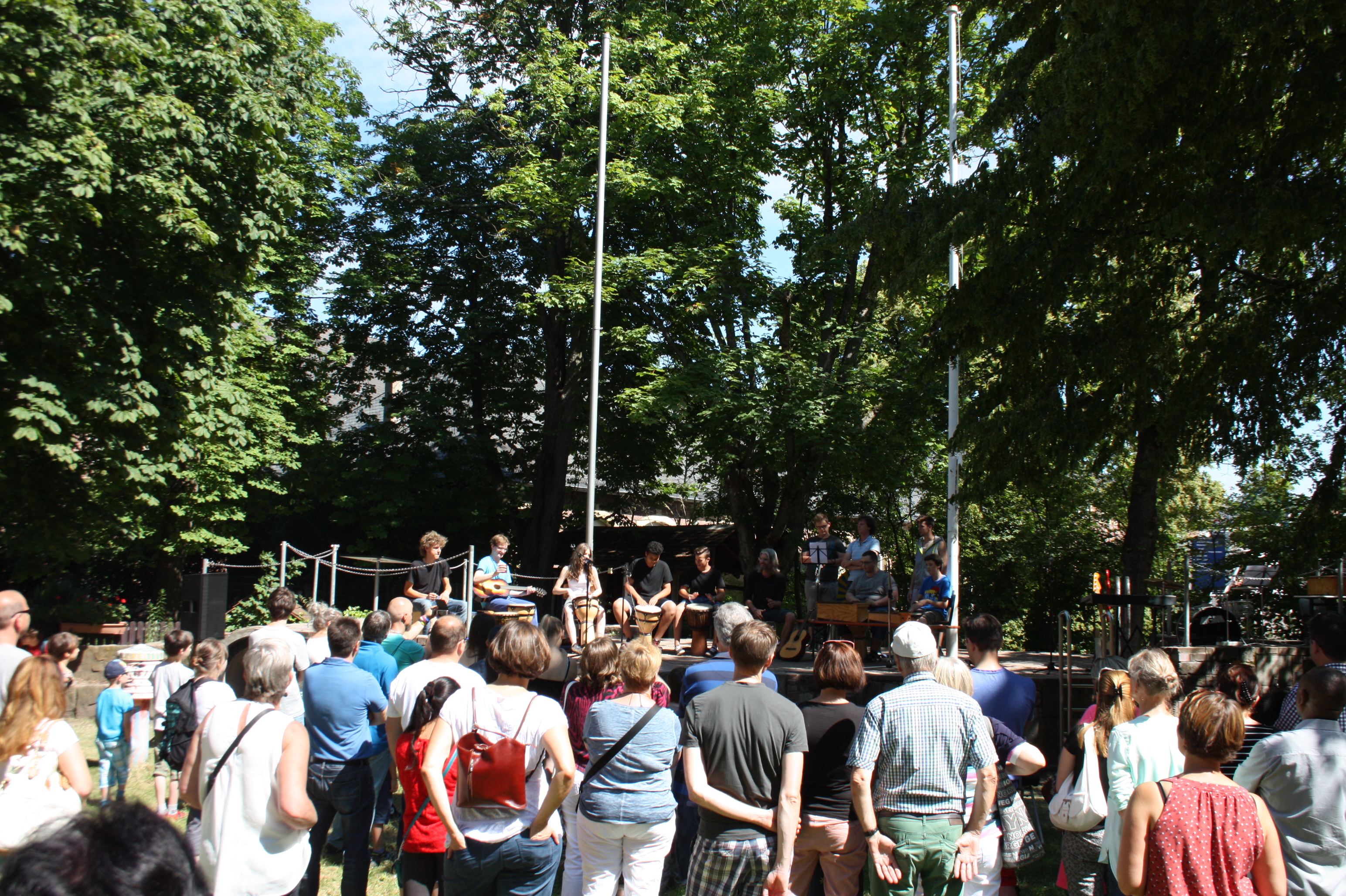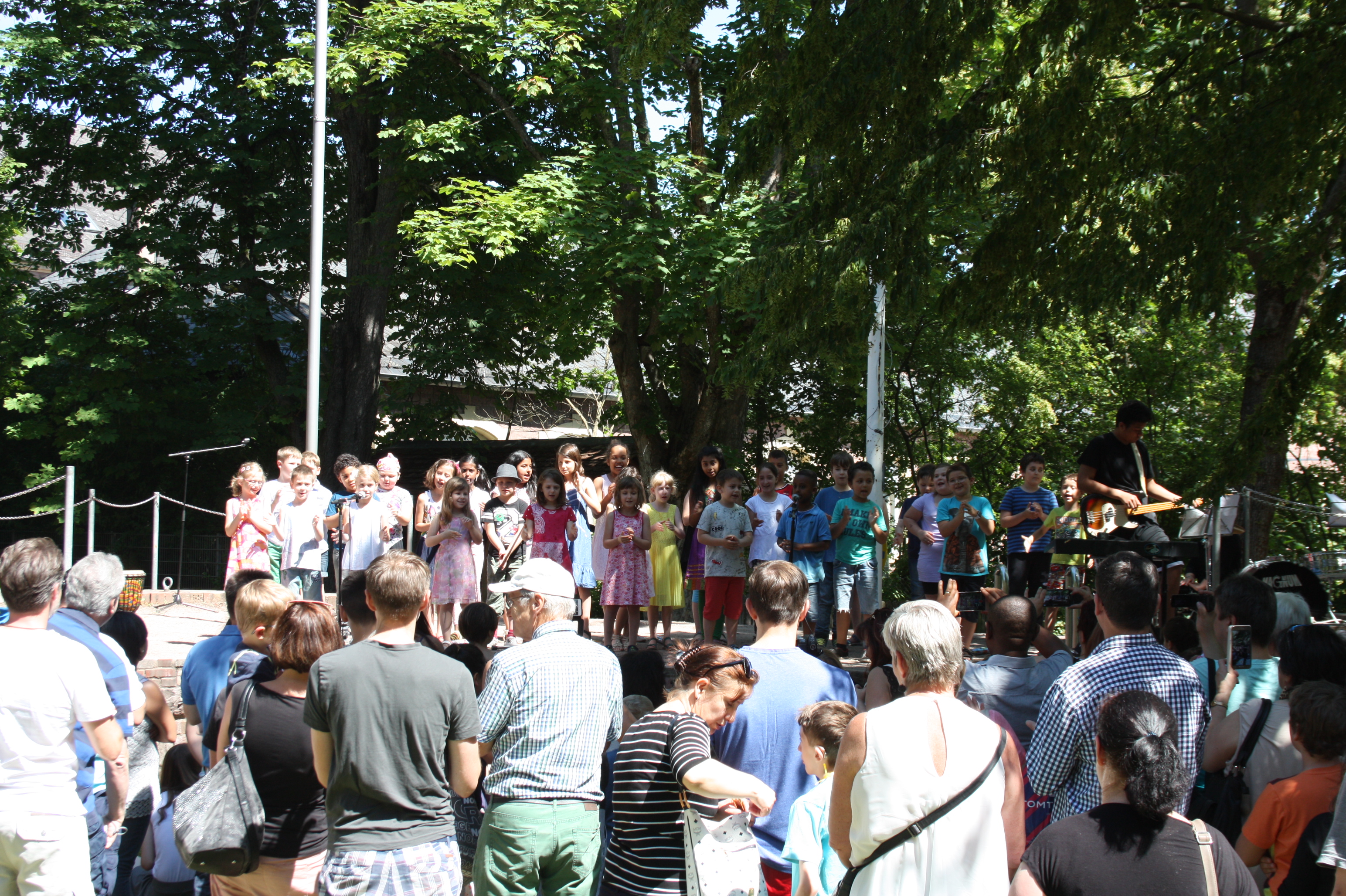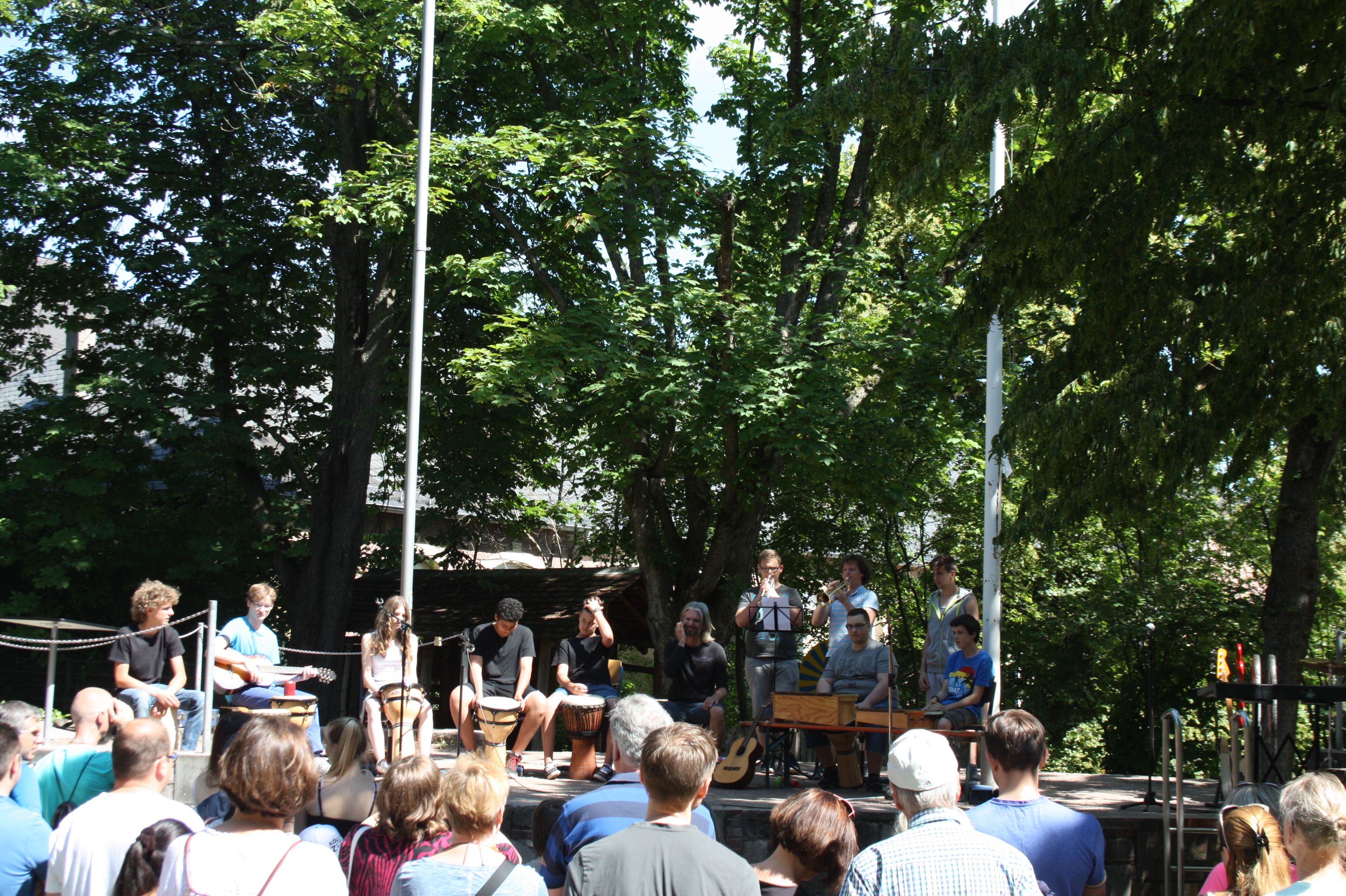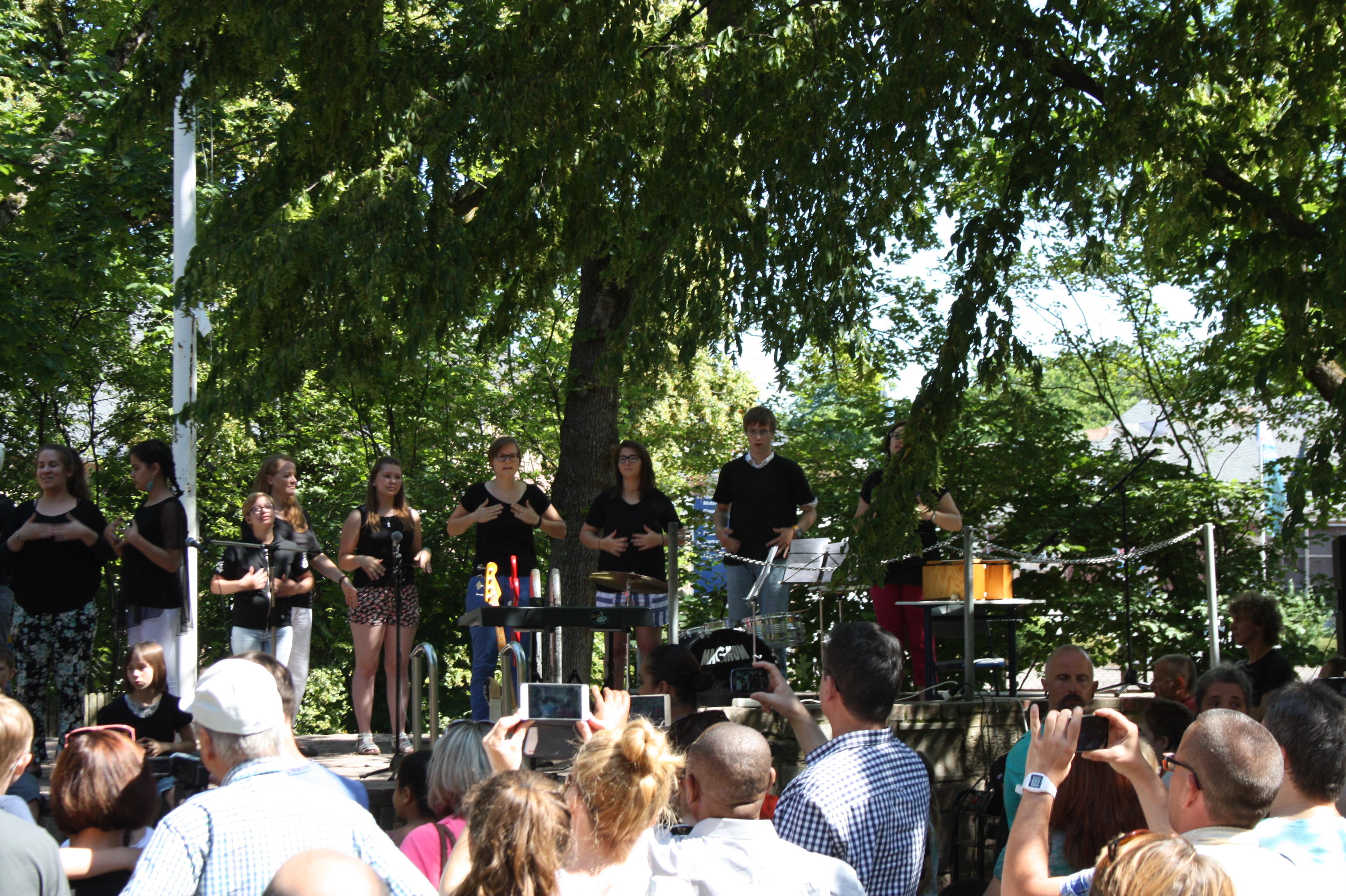 Neben kulinarischen Angeboten wie Flammkuchen, Gegrilltem und leckeren Cocktails wurde den Besuchern auch ein vielseitiges Unterhaltungsprogramm geboten. So gab die Trommel-AG zwei Lieder aus den aktuellen Charts zum Besten, der Gebärdenchor „Fliegende Hände“ präsentierte den Inklusionssong „Anderssein vereint“ und der Grundschulchor begeisterte das Publikum mit drei fröhlich vorgetragenen Gute-Laune-Liedern!