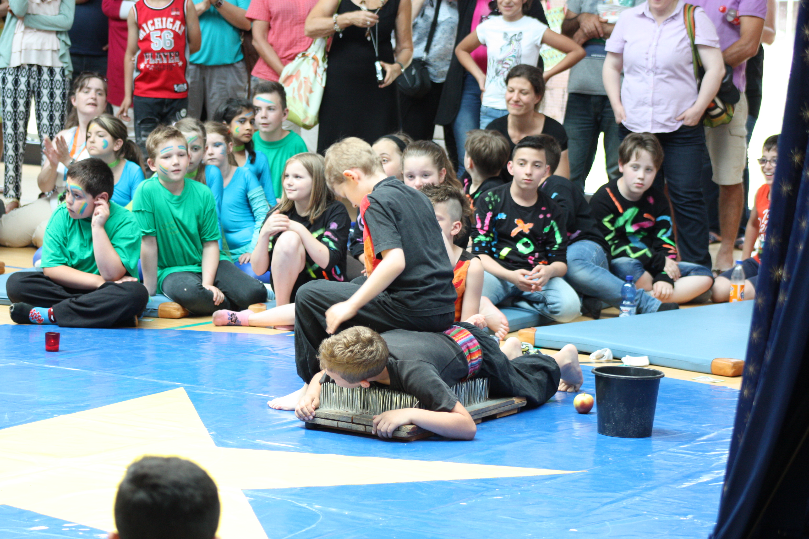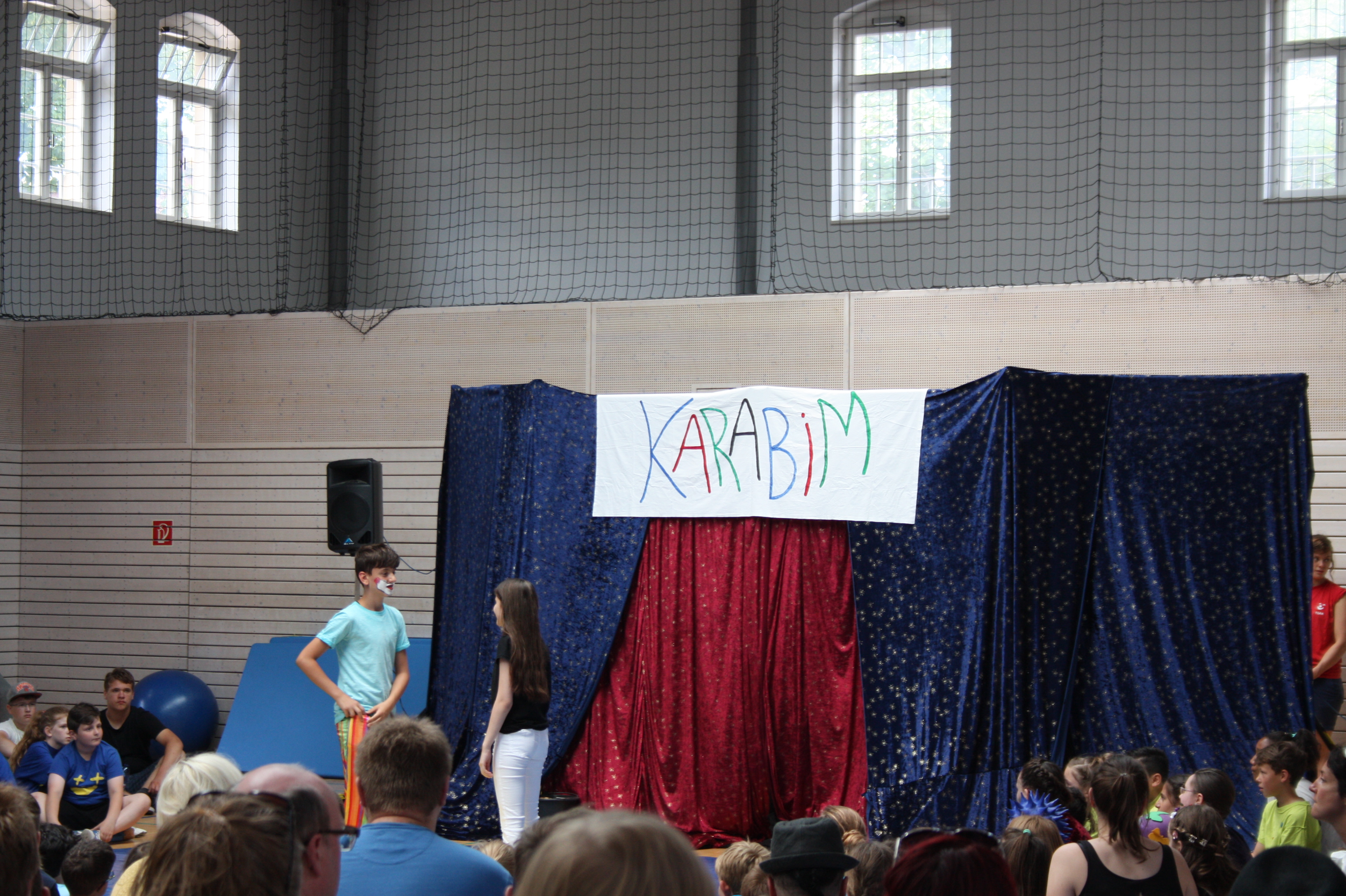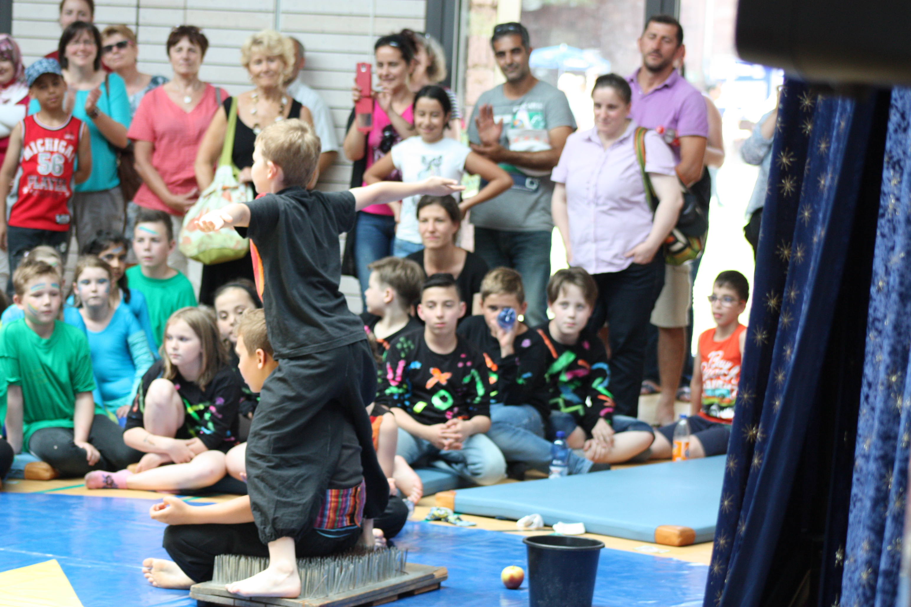 Am Nachmittag präsentierten dann noch die SchülerInnen der Klassen 3 – 5g in einer großen Zirkusgala ihr neu erworbenes Können aus einer Projektwoche mit dem Team des Zirkus Maccaroni. (nähere Informationen zu dieser Projektwoche finden Sie hier: https://www.eks-ka.de/index.php/gestalten-und-lernen/theater/)