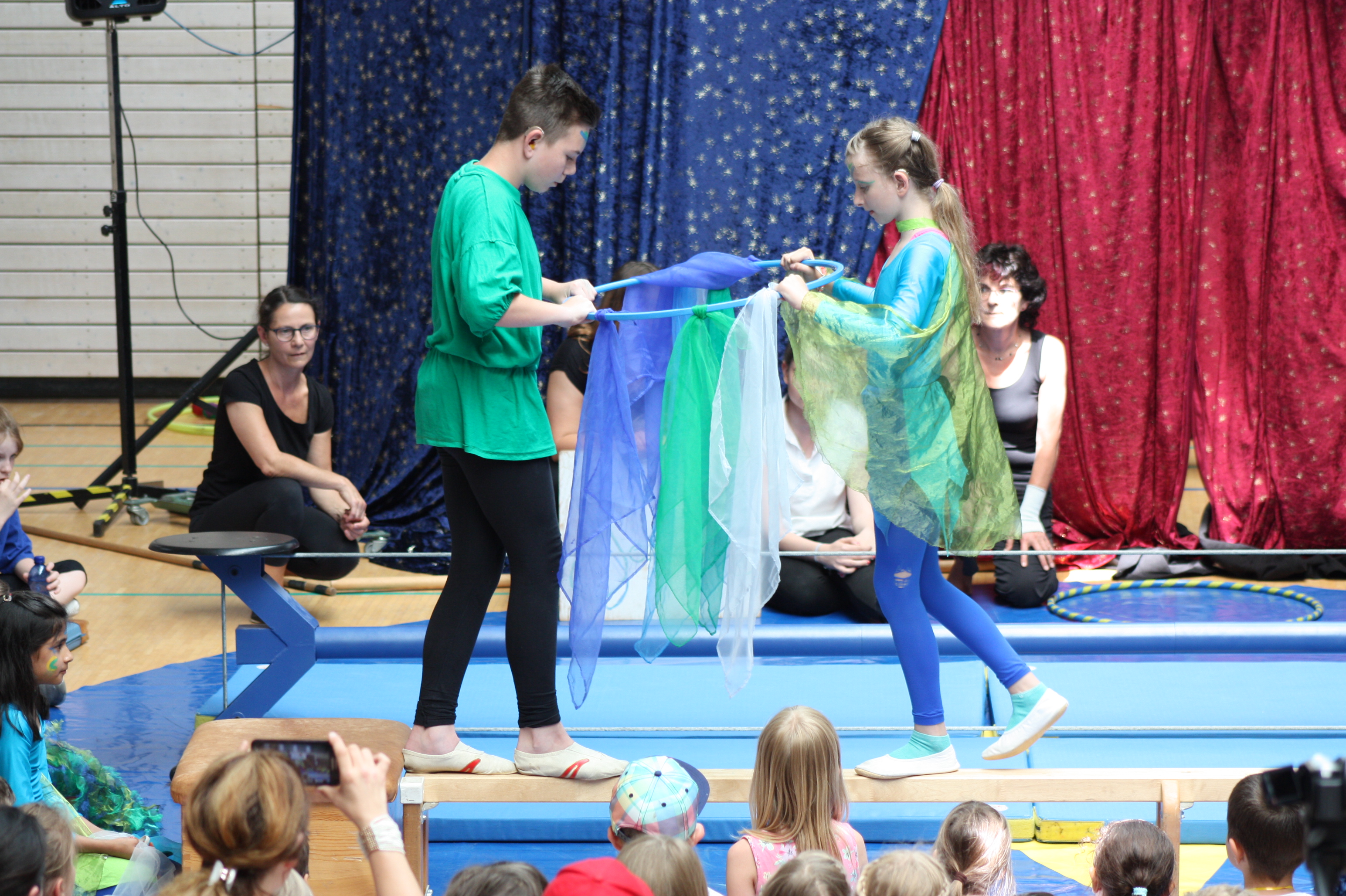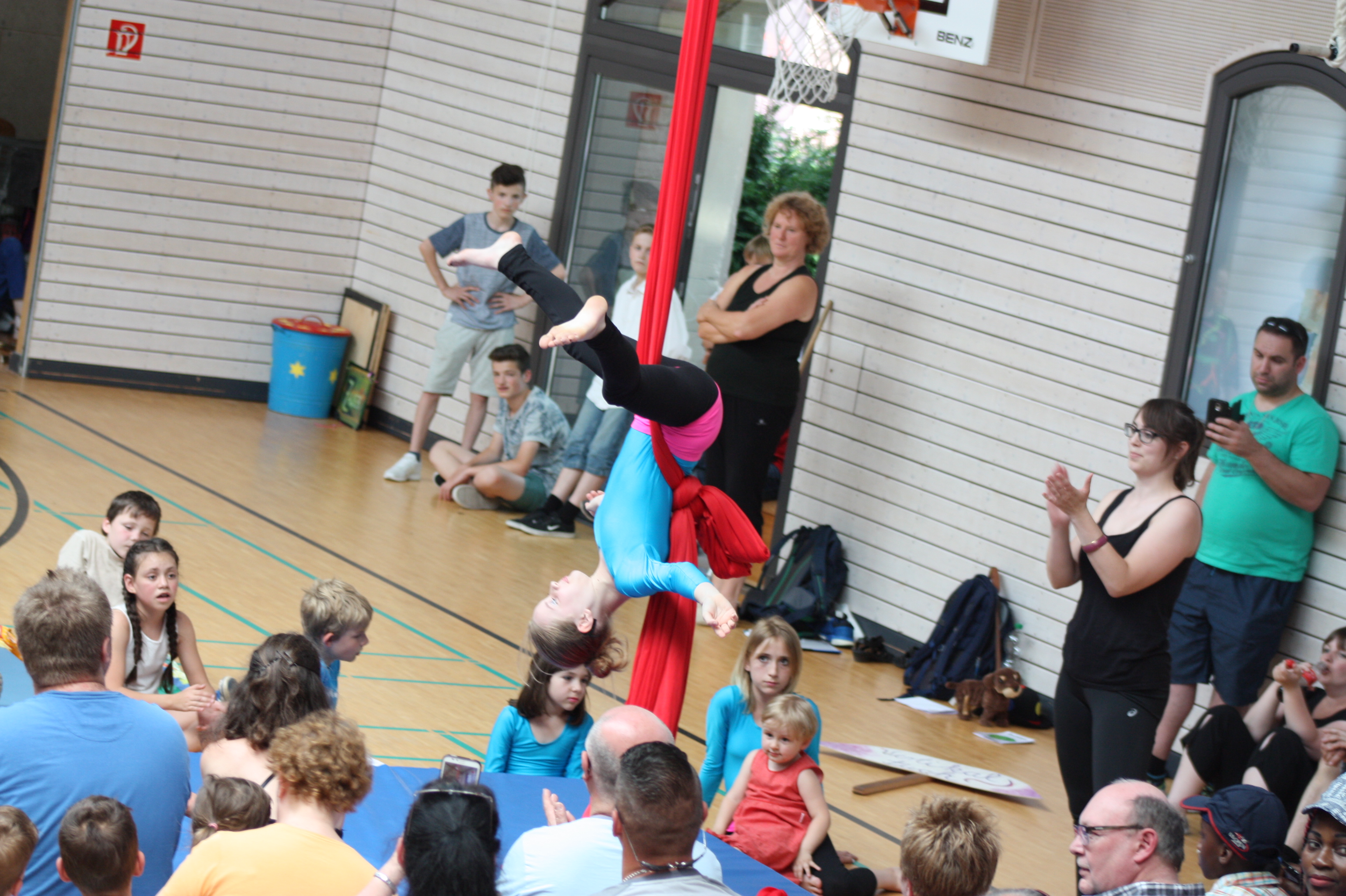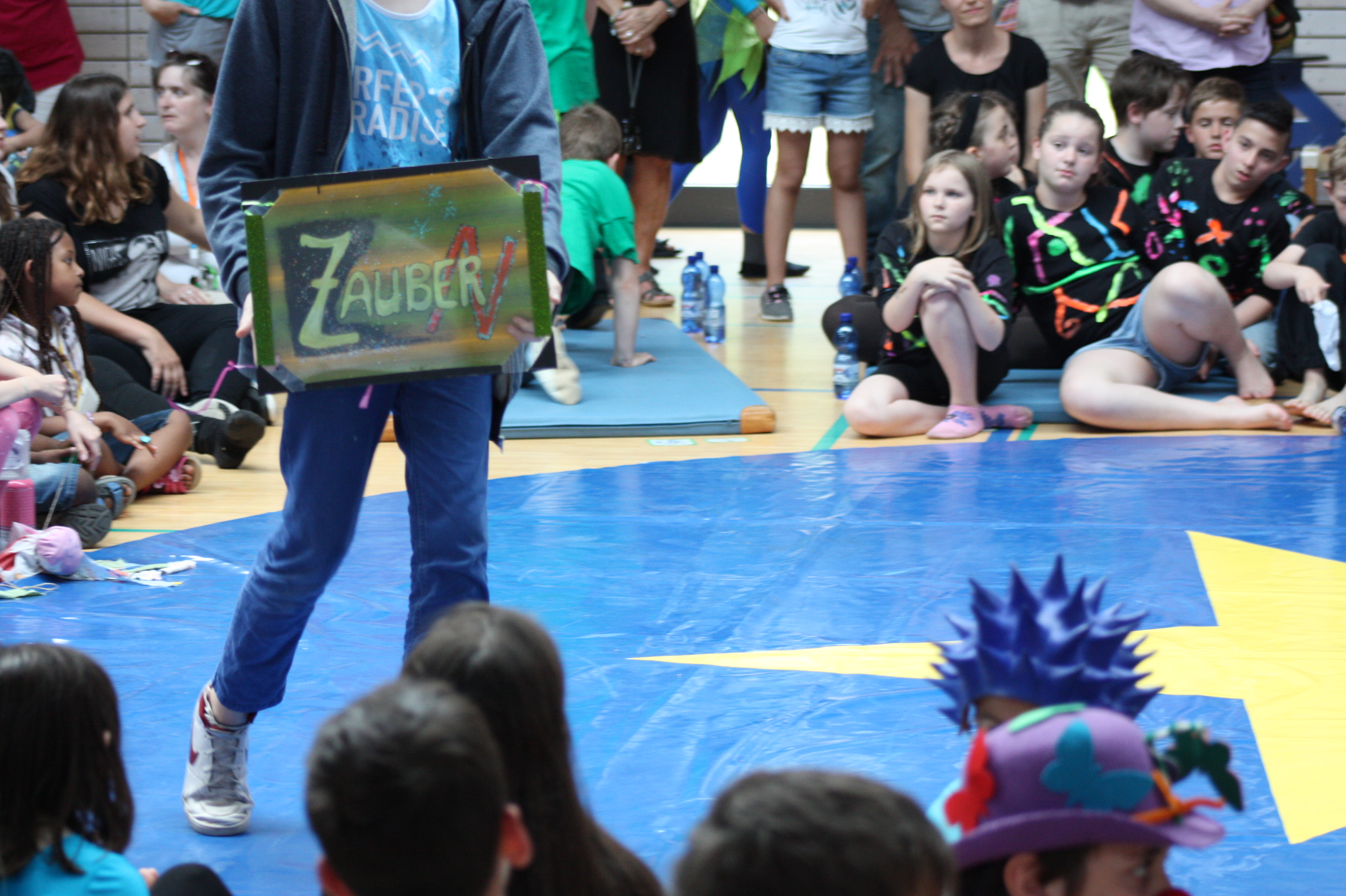 Am Nachmittag präsentierten dann noch die SchülerInnen der Klassen 3 – 5g in einer großen Zirkusgala ihr neu erworbenes Können aus einer Projektwoche mit dem Team des Zirkus Maccaroni. (nähere Informationen zu dieser Projektwoche finden Sie hier: https://www.eks-ka.de/index.php/gestalten-und-lernen/theater/)