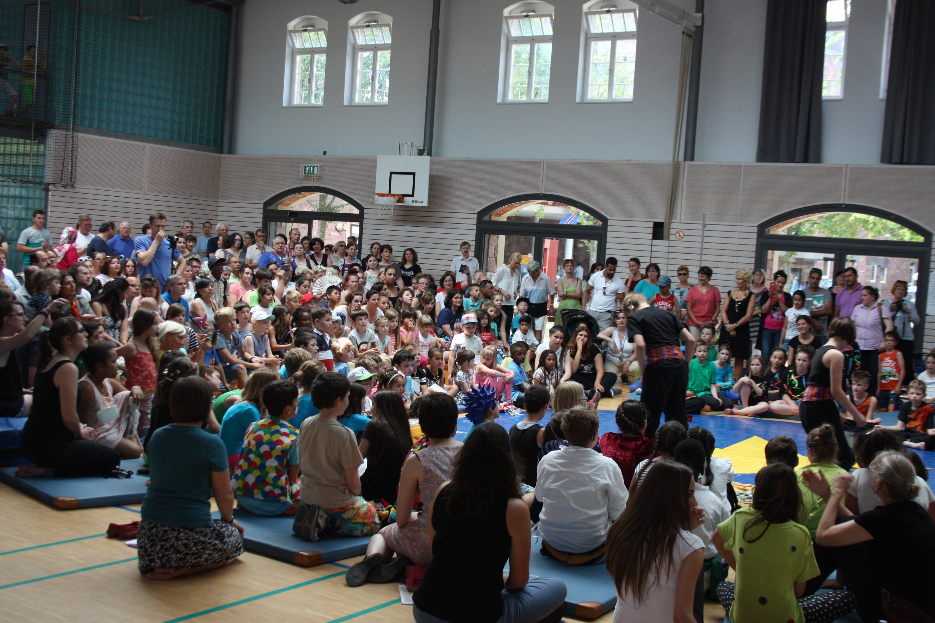 Am 9.Juli 2016 fand unser alljährliches Schul-Sommerfest wie immer unter strahlend blauem Himmel bei gewohnt sommerlichen Temperaturen statt. Zahlreiche Schülerinnen und Schülern kamen mit ihren Eltern, aber auch viele ehemalige SchülerInnen und Kolleginnen nutzten diesen Tag, um ihre alte Schule zu besuchen. Für Unterhaltung war bestens gesorgt. So gab es für die kleinen Besucher über fünfzehn Spiel- und Bastelstationen, an denen sie beispielsweise balancieren und klettern, aber auch Sommerhüte und Wurfbälle basteln konnten.
