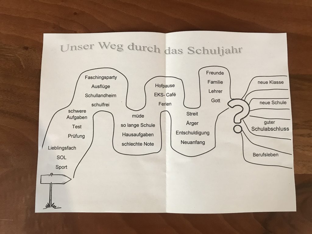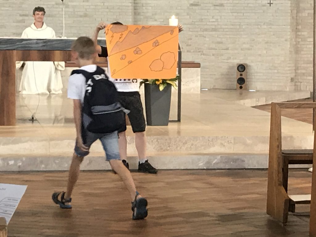 Um uns das Motto des Gottesdienstes „Unser Weg durch das Schuljahr“ näherzubringen, hatten die Schüler*innen der Klasse 5b gemeinsam mit ihrer Klassenlehrerin Frau Nied ein kurzes Stück dazu einstudiert.