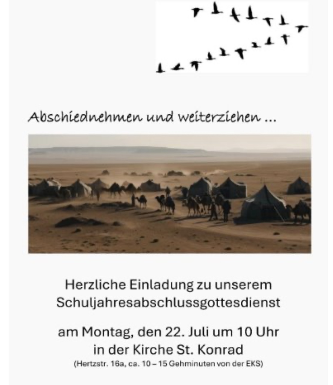 Der letzte Gottesdienst im Schuljahr 2023/24 stand unter dem Motto „Abschiednehmen und weiterziehen…“ und fand am 22.Juli in der St. Konrad Kirche statt.