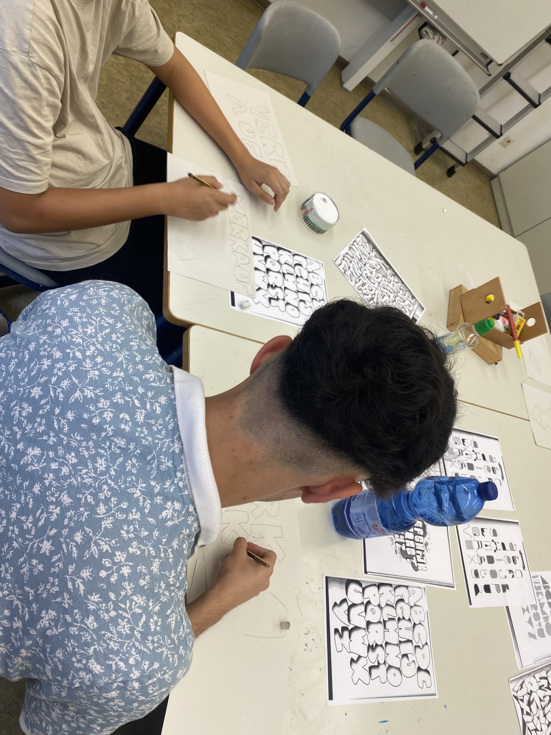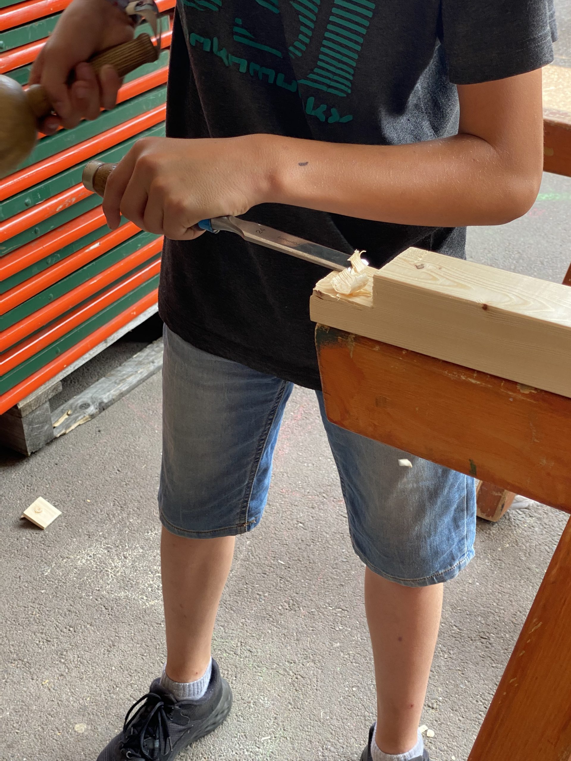 Die dritte Gruppe hat das Design für den Verkaufstand geschnitzt und ausgemalt. Sie wurden von Anna, ebenfalls vom KooBo-Projekt, angeleitet. Zum Reinkommen ins Schnitzen hat die Designgruppe zwei Tage Anfangsübungen gemacht.