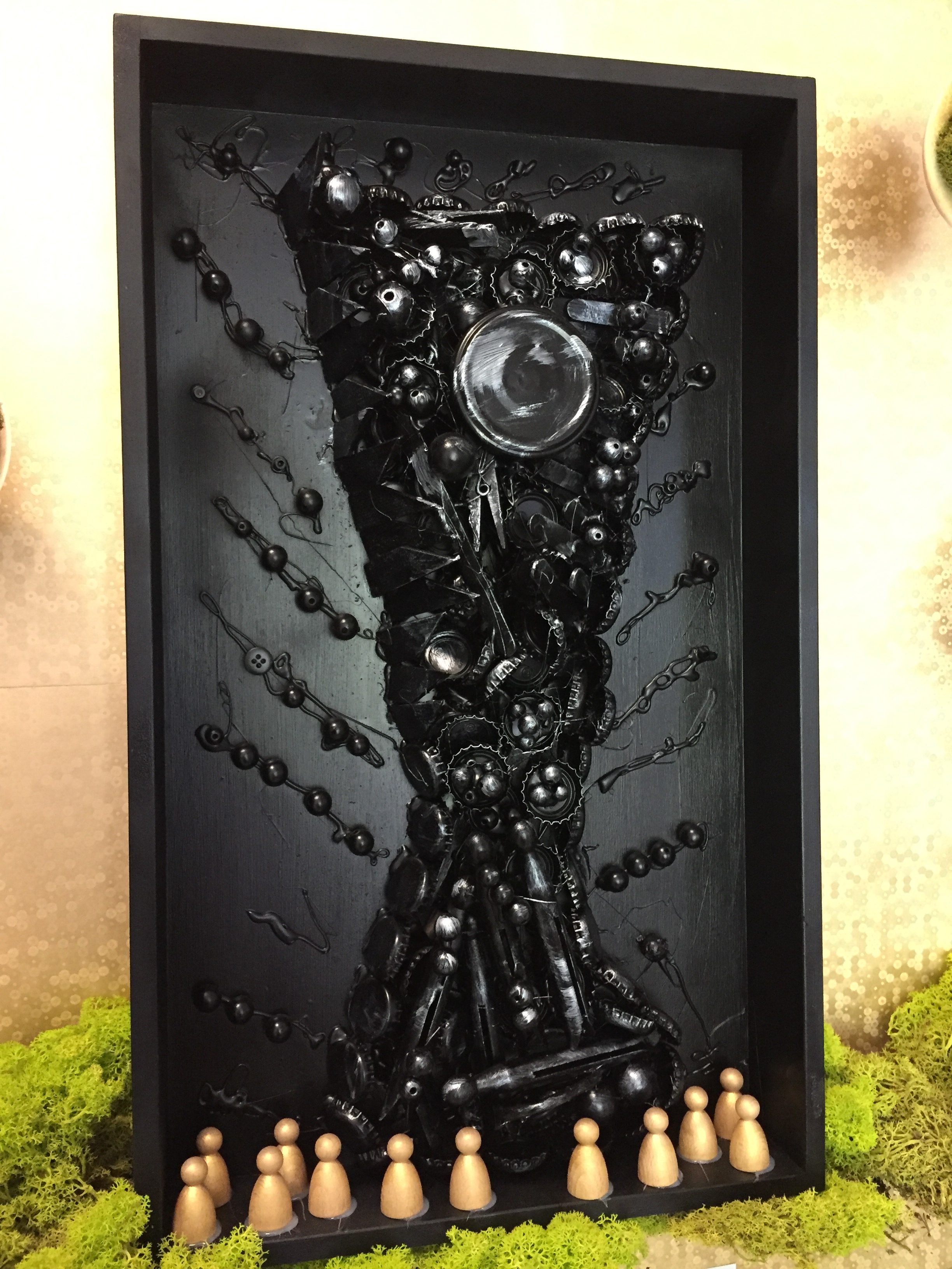 Die Klasse 8a hat zusammen mit Frau Koppe in einem offenen Projekt künstlerische Arbeiten erstellt, von denen eine Gruppenarbeit und eine Partnerarbeit mit dem Ortspreis prämiert wurden. Zum einen handelt es sich um den Film „Sprache machts.“, bei dem vier Schülerinnen und Schüler über ihre Erfahrungen mit Sprache in Bezug auf Europa reflektieren. Zum anderen handelt es sich um eine Assemblage mit dem Titel „Sprache des Fußballs“. Diese plastische Arbeit stellt den Europapokal dar und zeigt, dass auch der Fußball Menschen über eine ganz eigene Kommunikationsform verbindet. Dabei sind die Menschen aller Nationen gleich, symbolisiert durch die 12 goldenen Spielfiguren im Vordergrund der Arbeit.