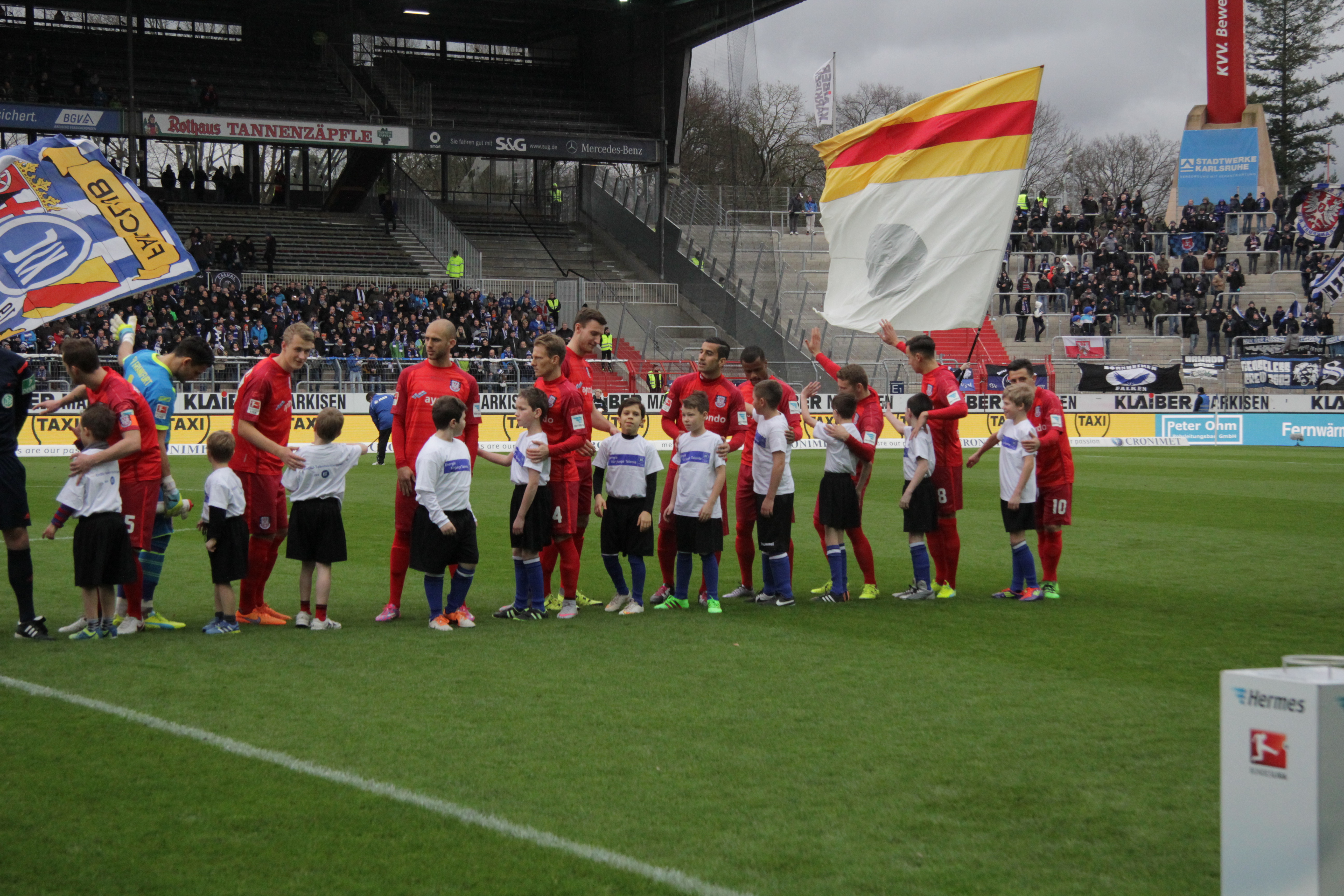 Am 07.02.2016 durften einige Schüler der Erich Kästner-Schule beim Fußballspiel Karlsruhe (KSC) gegen Frankfurt (FSV 1899 Frankfurt) einlaufen. Es war ein beeindruckendes Erlebnis den Spielern so nah zu sein. Stolz sind die Schüler mit den Profi-Fußballspielern Hand in Hand auf das Spielfeld gelaufen und durften sich anschließend gemeinsam mit ihren Eltern, einigen Lehrern und der Schulleitung das Spiel anschauen.