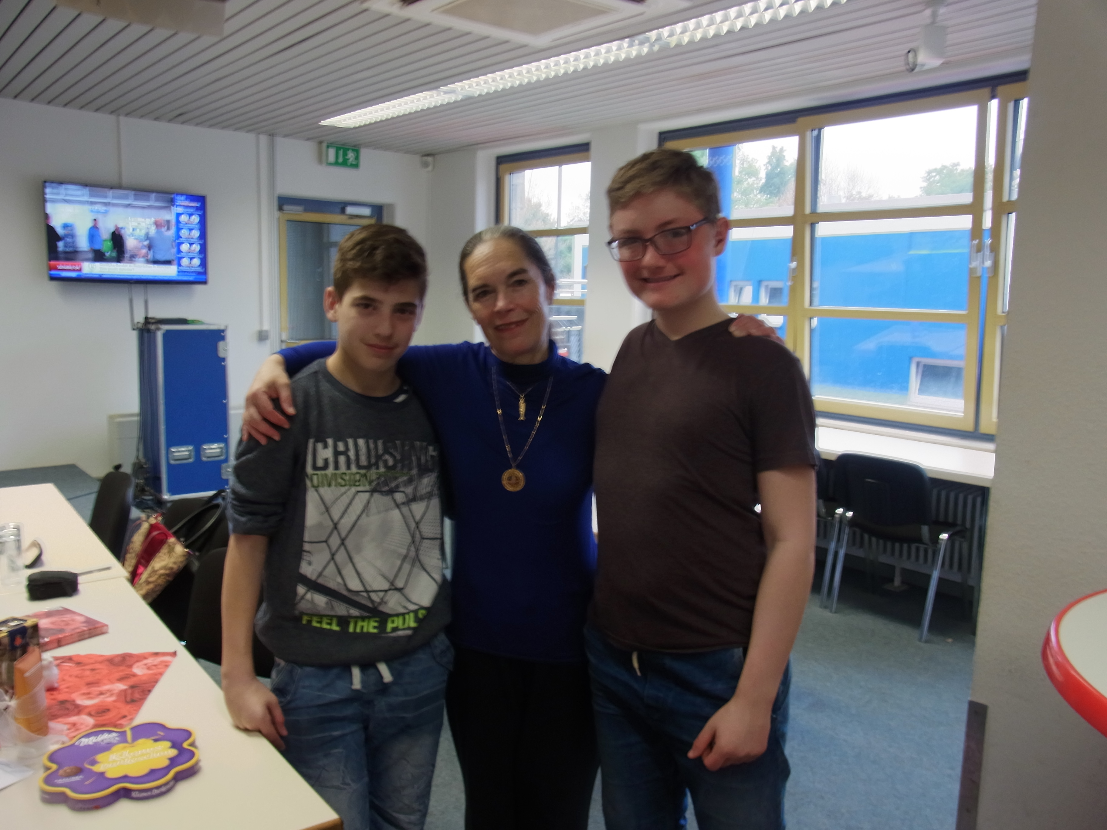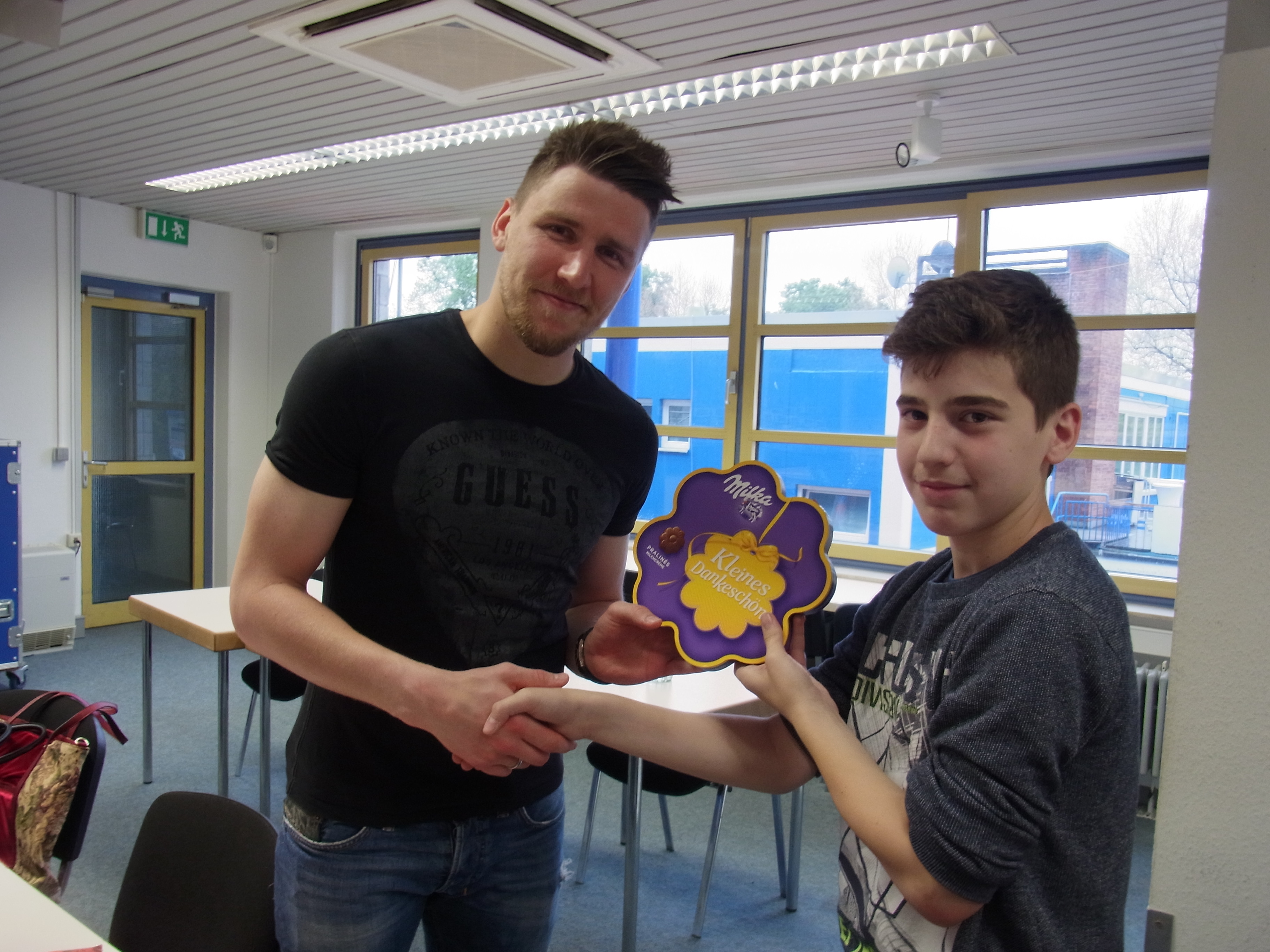 Begleitet von ihrer Lehrerin Frau Segnitz durften sie im Anschluss an das Gespräch sogar an einer Pressekonferenz teilnehmen. So wurde die tolle Leistung der drei Jungs auch noch mit einem besonderen Erlebnis belohnt!