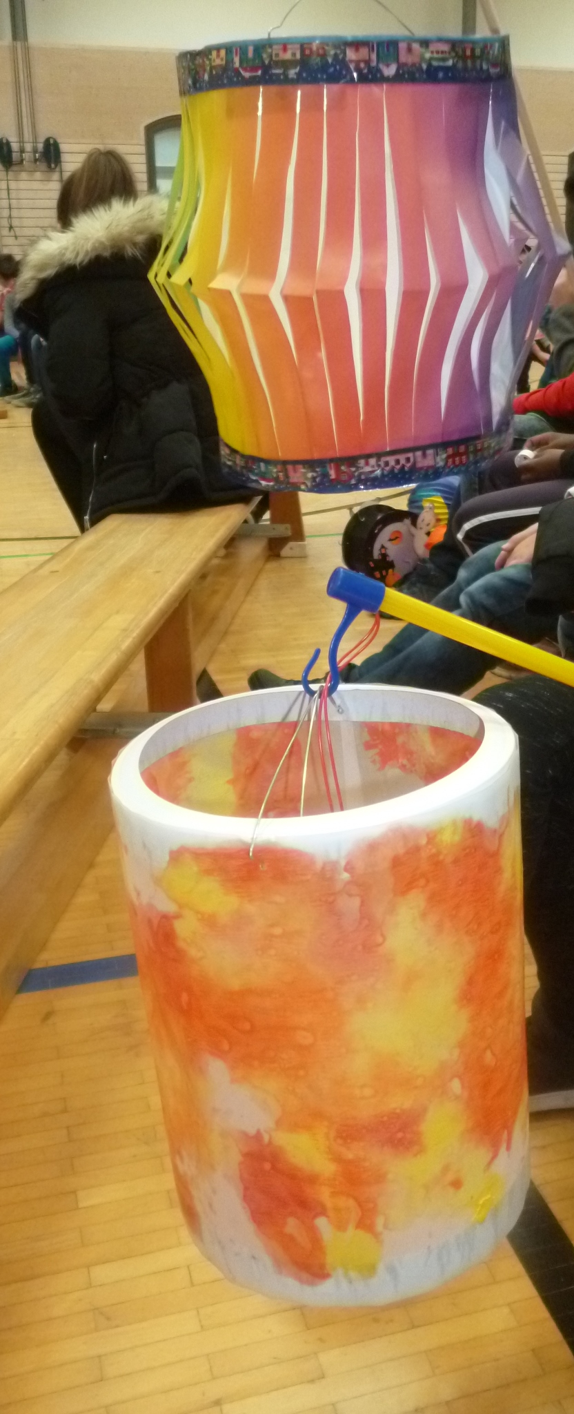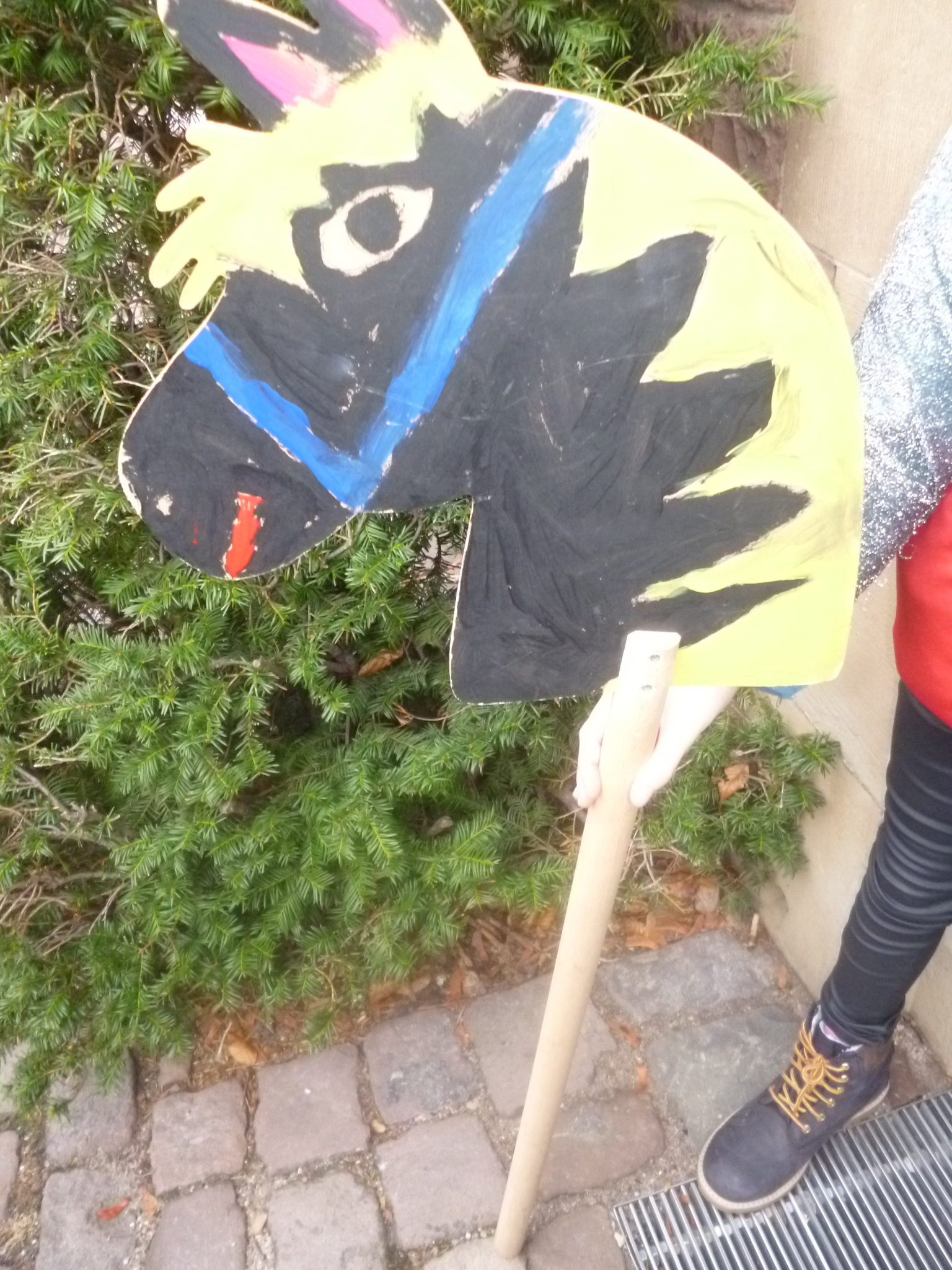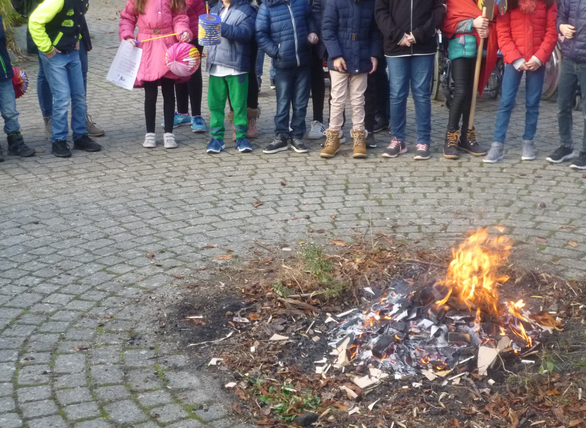 Dann fand ein bunter Laternenumzug zum Lagerfeuer, das bereits auf der Feuerstätte auf dem Schulhof entfachte wurde, statt. Die Martinsgänse wurden von den Schüler*innen der Klasse 9a an die Grundschüler*innen ausgegebenund danach innerhalb der Klassen geteilt.