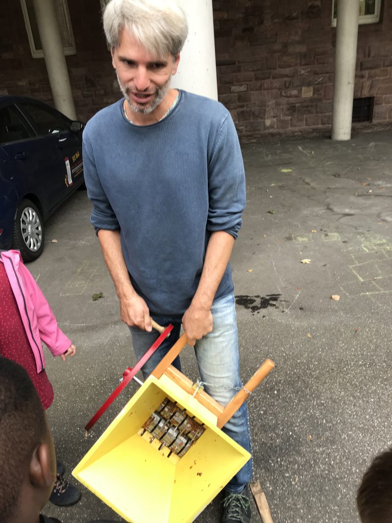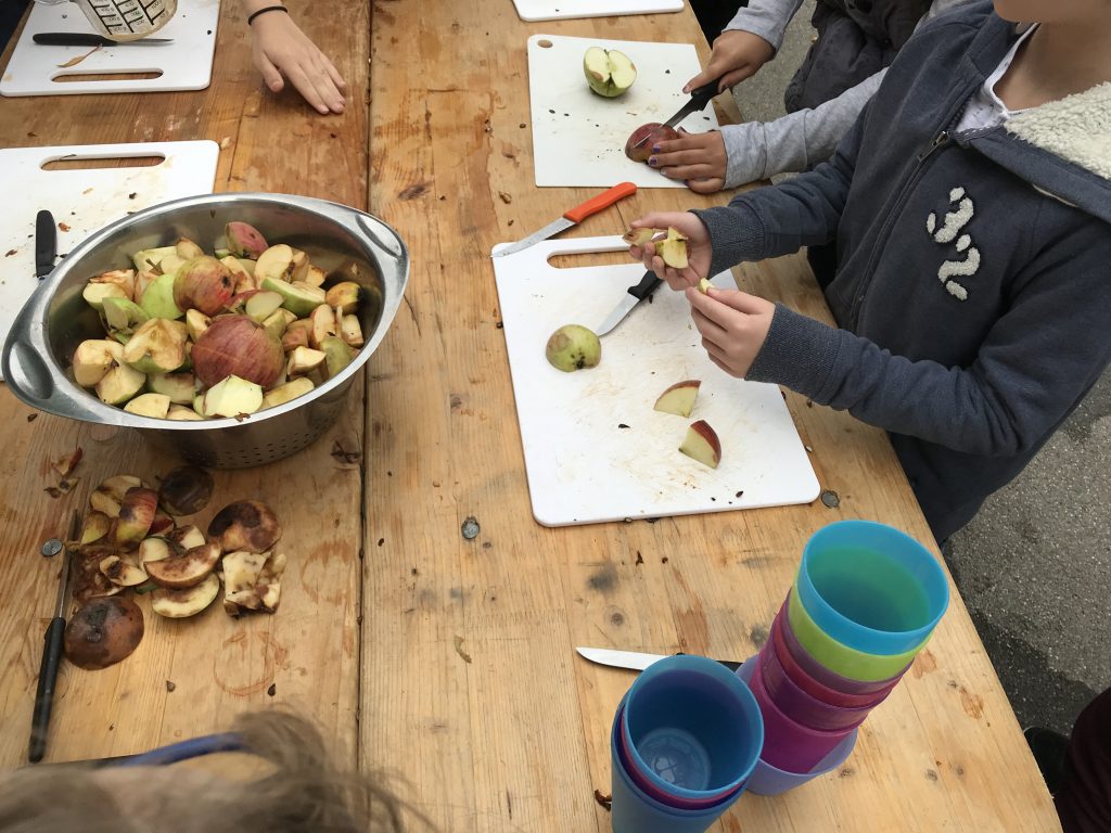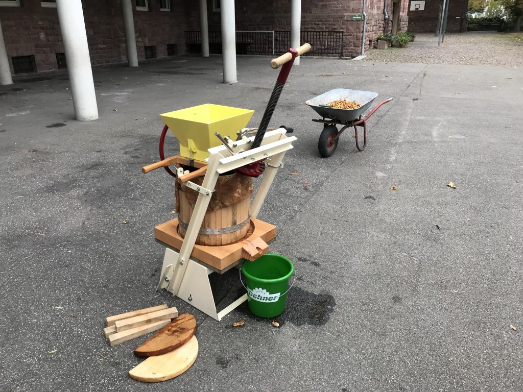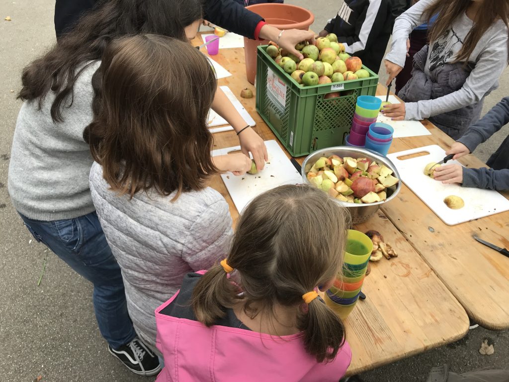 Am 1. Oktober 2019 organisierte Herr Rimmele wieder unseren traditionellen Apfeltag. Dafür durften sich alle Klassen der Grundschule anmelden und mit Unterstützung einiger 9. Klässler*innen das knackige Obst schneiden, um es anschließend zu pressen. Und auch diesmal waren sich alle einig: Der EKS-Apfelsaft schmeckt einfach am besten!
