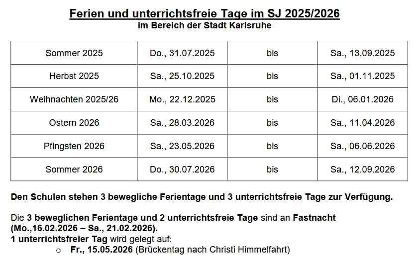 Ferienplan und andere Termine