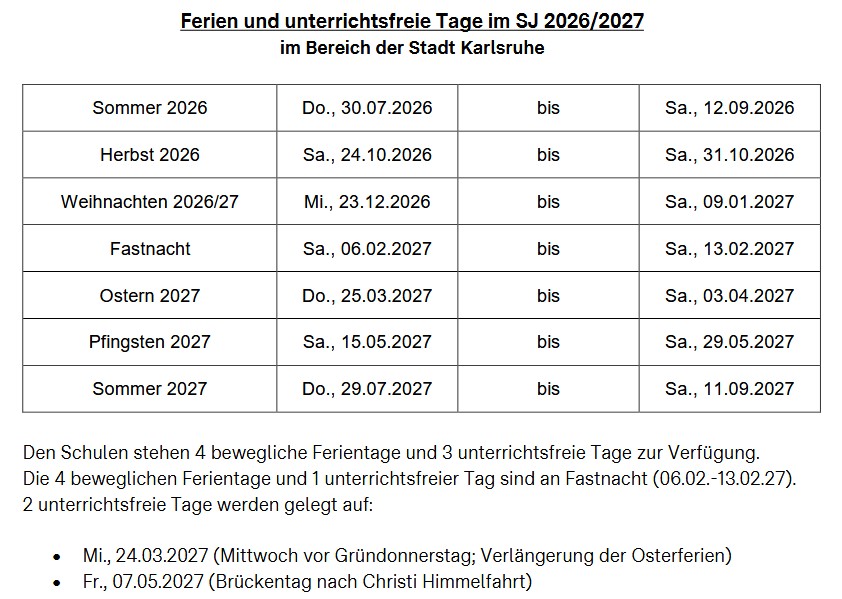 Ferien und andere Termine